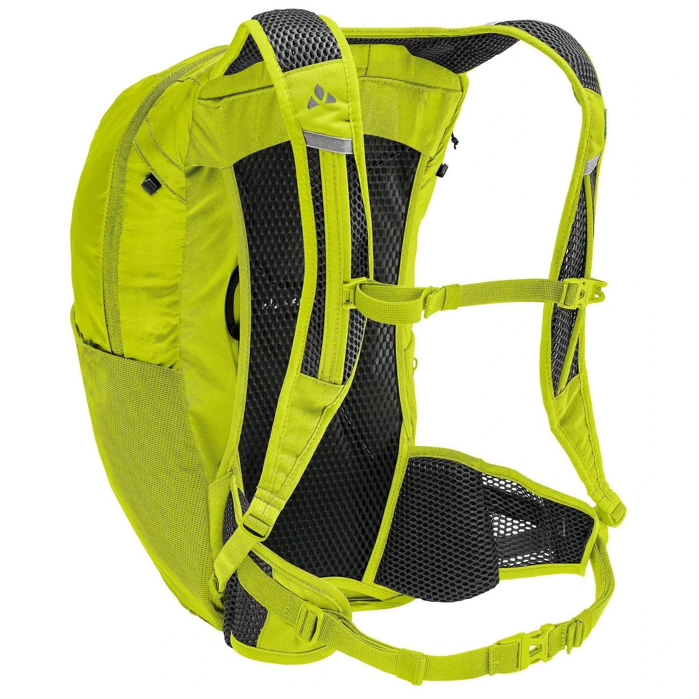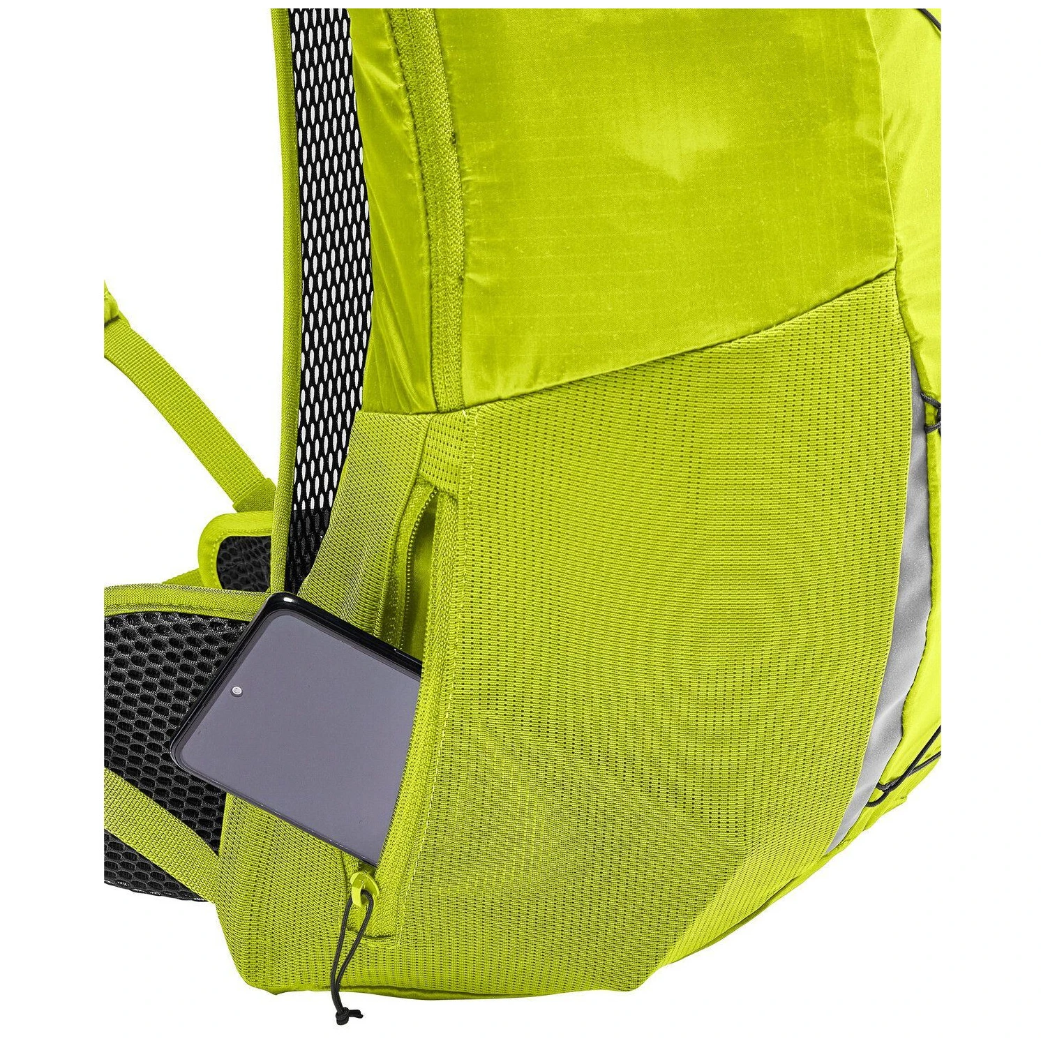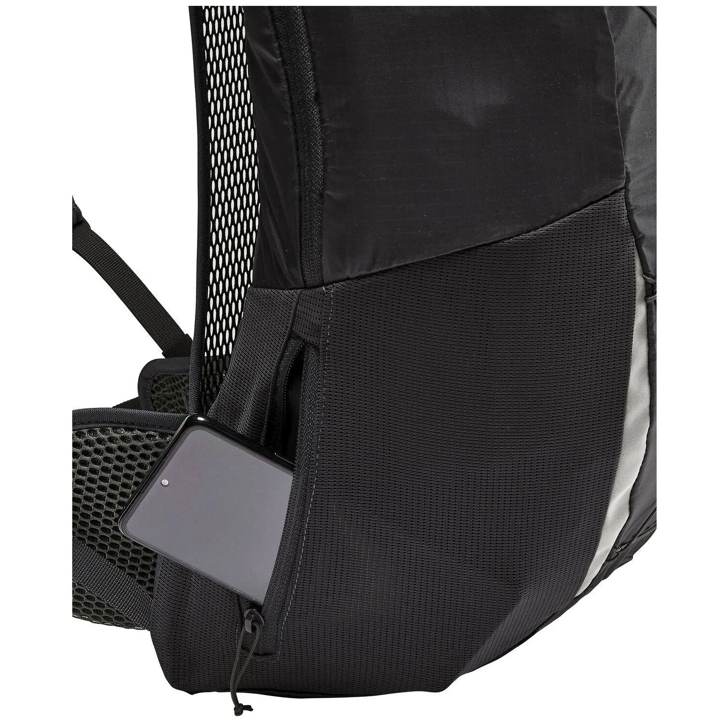 Praktyczny podział obejmuje komorę główną, przednią kieszeń na zamek błyskawiczny, boczną elastyczną kieszeń i boczną kieszeń na zamek błyskawiczny – idealne na telefon, przekąskę lub drobiazgi. Wielofunkcyjne przednie sznurowanie 3w1 umożliwia kompresję plecaka, a także mocowanie kurtki lub kijków trekkingowych, a jednocześnie służy jako uchwyt na kask. Oczywistością jest otwór na system hydratacyjny, elementy odblaskowe, możliwość przymocowania światła i zintegrowany pokrowiec przeciwdeszczowy.