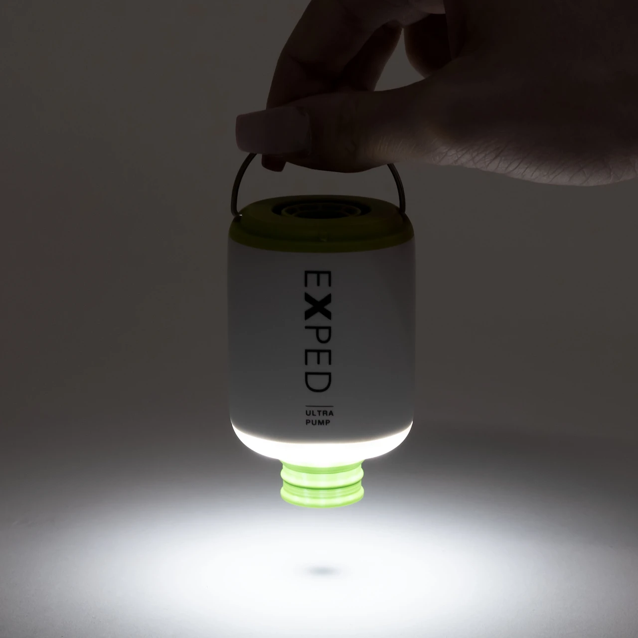 Ultra Pump marki Exped to elektryczna pompka na baterie o naprawdę bardzo kompaktowych wymiarach, która jednocześnie posłuży jako lampa kempingowa.
