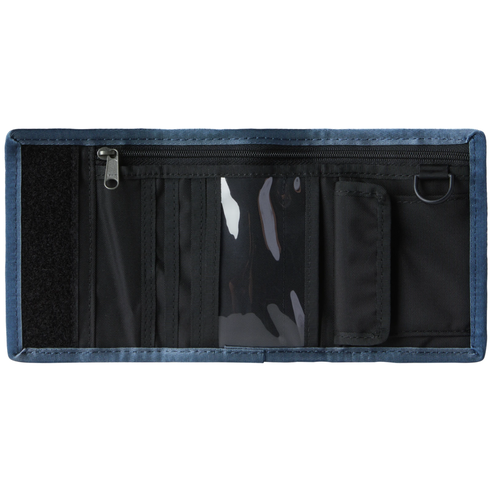 The North Face Base Camp Wallet to bardzo lekki portfel, wykorzystujący materiały, które tworzą bardzo wytrzymały bagaż podróżny. Składany na dwie części i zapinany na rzep. Wewnątrz znajdziemy, oprócz płaskiej przegrody na banknoty, kolejną zapinaną na zamek przegrodę na dokumenty, kieszeń na monety, organizer na karty kredytowe oraz pętelkę do przypięcia kluczy.