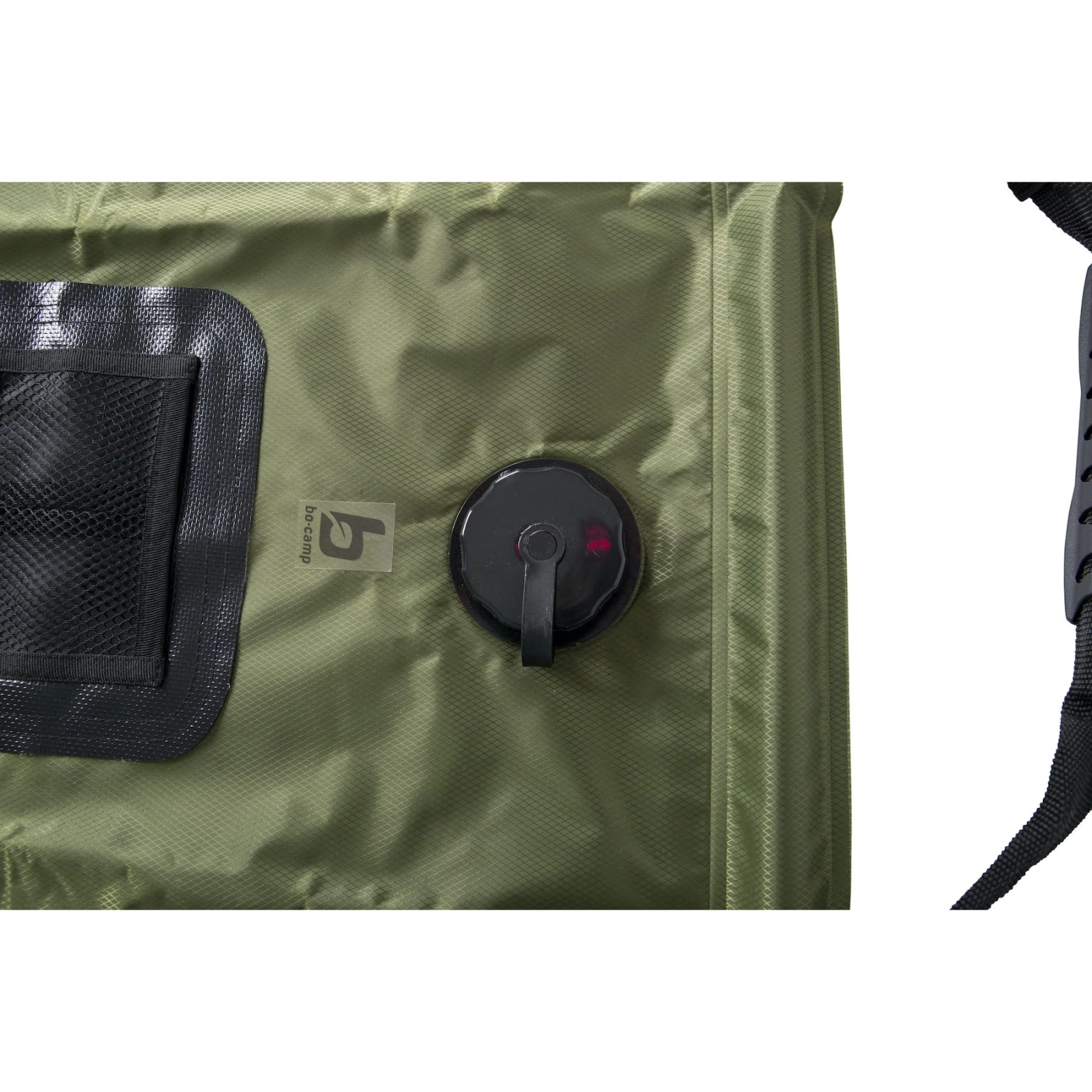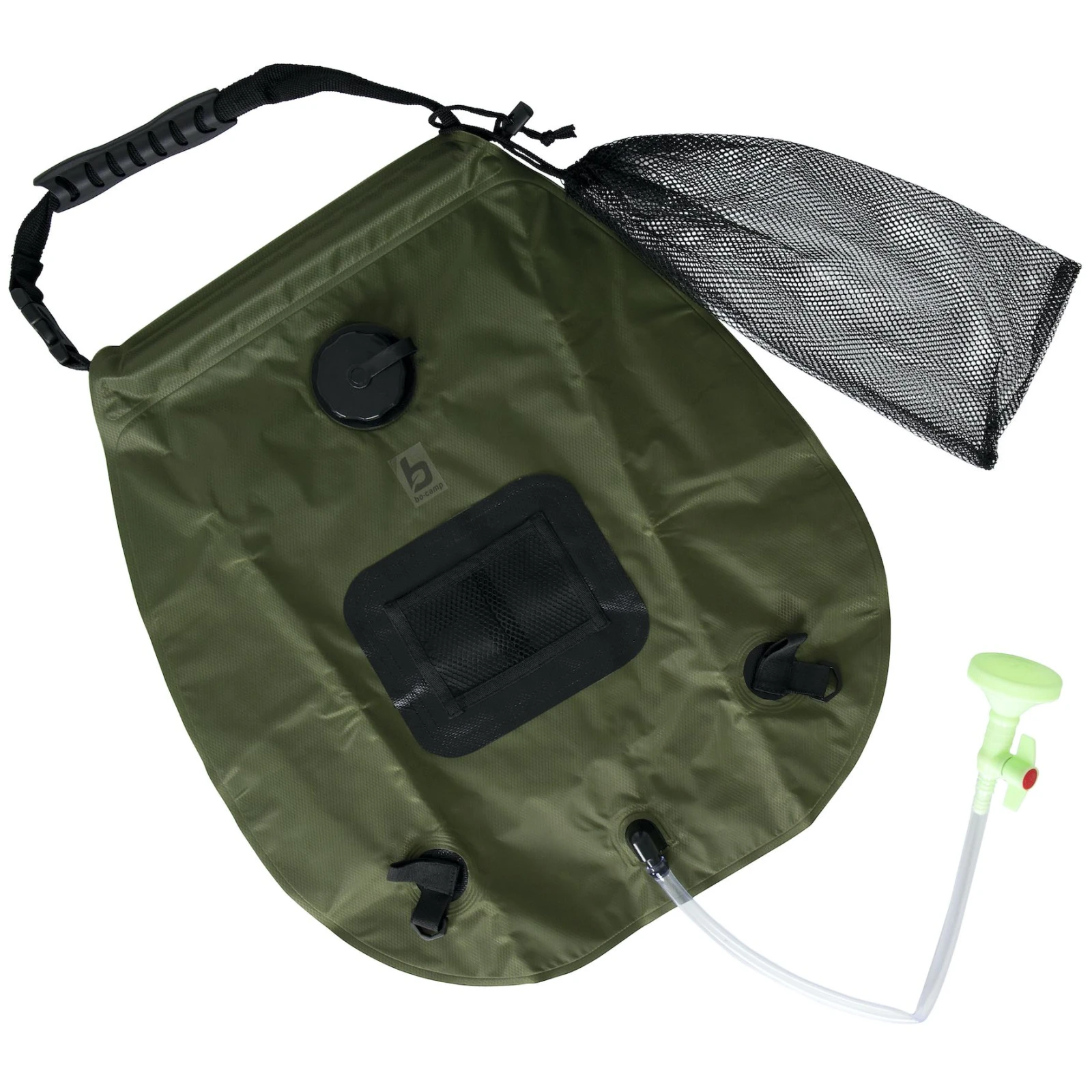 Przenośny prysznic kempingowy Solar Shower Deluxe - 20L od marki Bo-Camp. Zawsze własny prysznic, który nie zajmuje dużo miejsca. Wystarczy przymocować go za pomocą wiszącego sznurka, a woda będzie podgrzewana na słońcu. Prysznic ten jest odpowiedni do wzięcia jednej kąpieli. Prysznic można ponownie napełnić po użyciu. Prysznic jest wyposażony we wskaźnik temperatury.