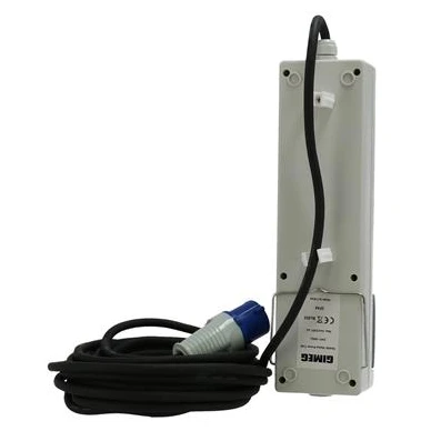 kabel elektryczny Przedłużacz z Gimeg ma długość 10 m i jest wyposażony w 3 gniazda z osłonami chroniącymi przed brudem i ewentualną wilgocią. Listwa szuflady zawiera również wyłącznik automatyczny i składany wspornik z tyłu do ewentualnego zawieszenia lub zamocowania.