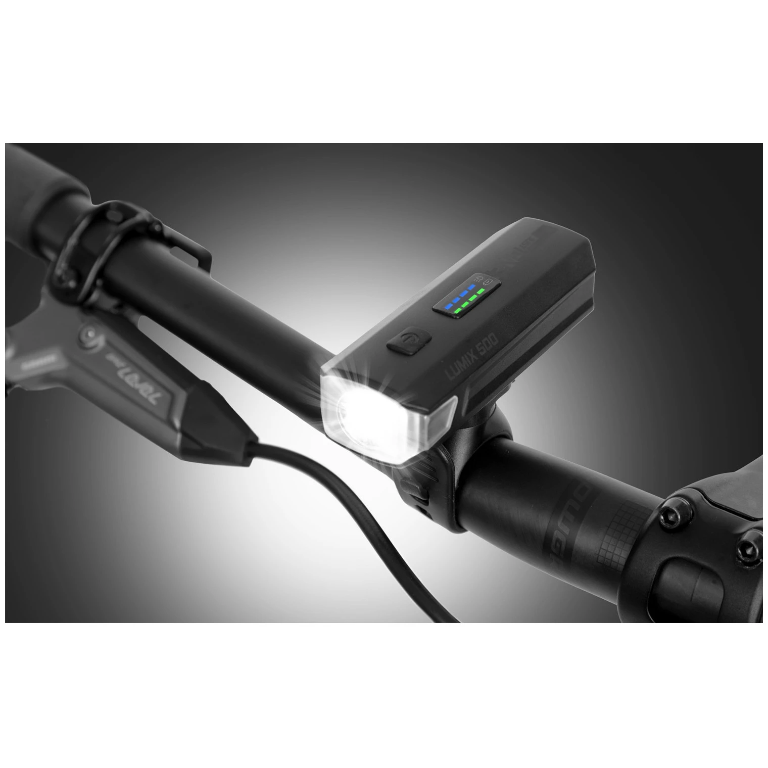 Wyposażona w ładowalny akumulator Li-ion o pojemności 2500 mAh, oferuje do 13 godzin pracy na jednym ładowaniu. Stan baterii i wybrany tryb są czytelnie prezentowane na wyświetlaczu graficznym. Ładowanie odbywa się wygodnie przez kabel USB-C, który jest dołączony do zestawu. Solidna i wodoodporna konstrukcja (IPX4) jest odporna na niekorzystną pogodę, a montaż bez użycia narzędzi umożliwia łatwe i szybkie przymocowanie. Dzięki kompaktowym wymiarom 97 x 34 x 25 mm i wadze zaledwie 105 g LUMIX 500 jest świetnym wyborem do codziennej i sportowej jazdy.