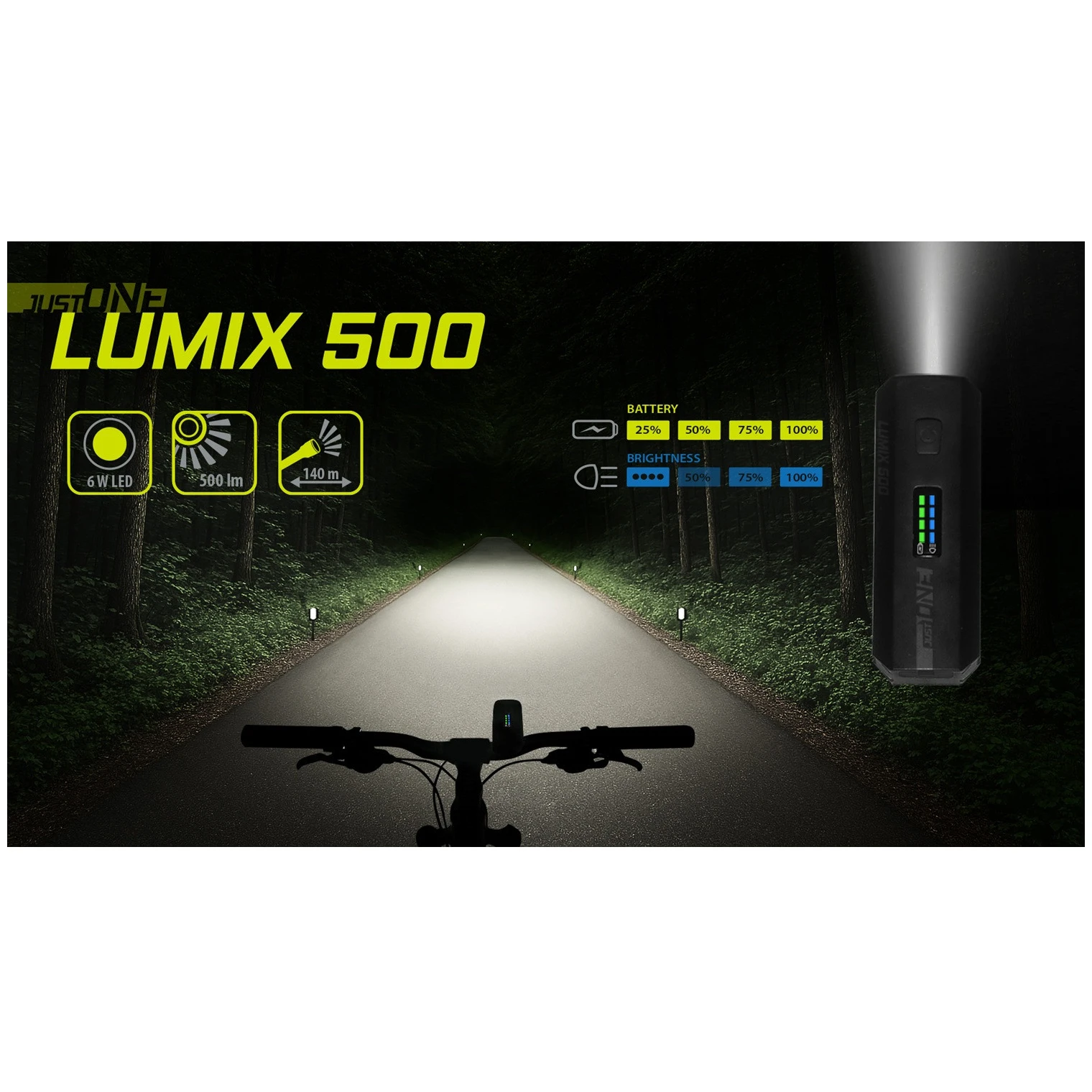 Zestaw świateł Just One LUMIX 500 i FLASH 40 oferuje kompaktowe wymiary, wodoodporność IPX4, lekką konstrukcję i dużą moc.