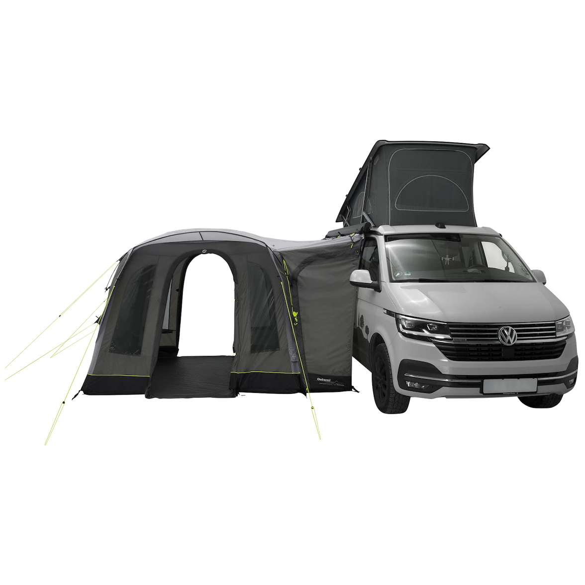 Główne wejście do namiotu ma duże wejście przystosowane dla wózków inwalidzkich z moskitierą i baldachimem. Można go całkowicie złożyć na bok, aby nie zwisał. Pozostałe dwa boczne wejścia naprzeciwko siebie znajdują się po stronie samochodu. Duże przyciemniane szyby zapewniają dużo światła, ale także ochronę przed promieniowaniem UV i prywatność. Można je zaciągnąć zasłonami.