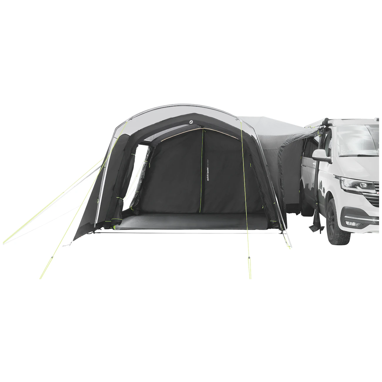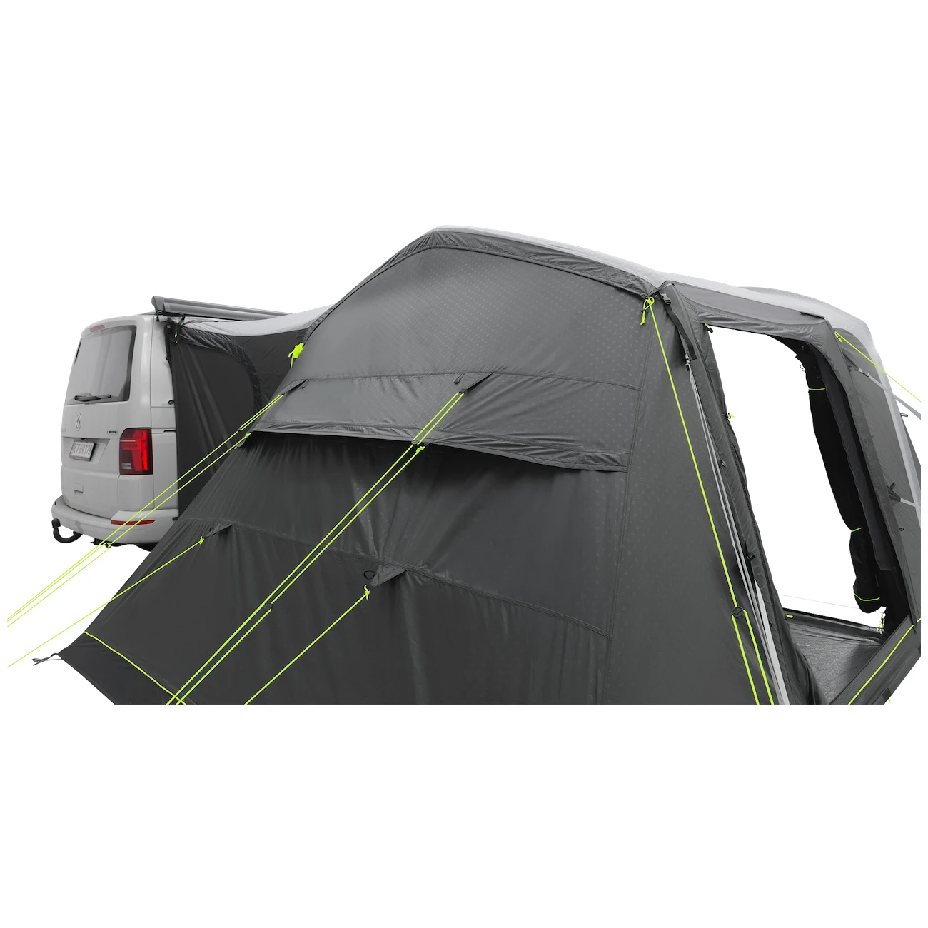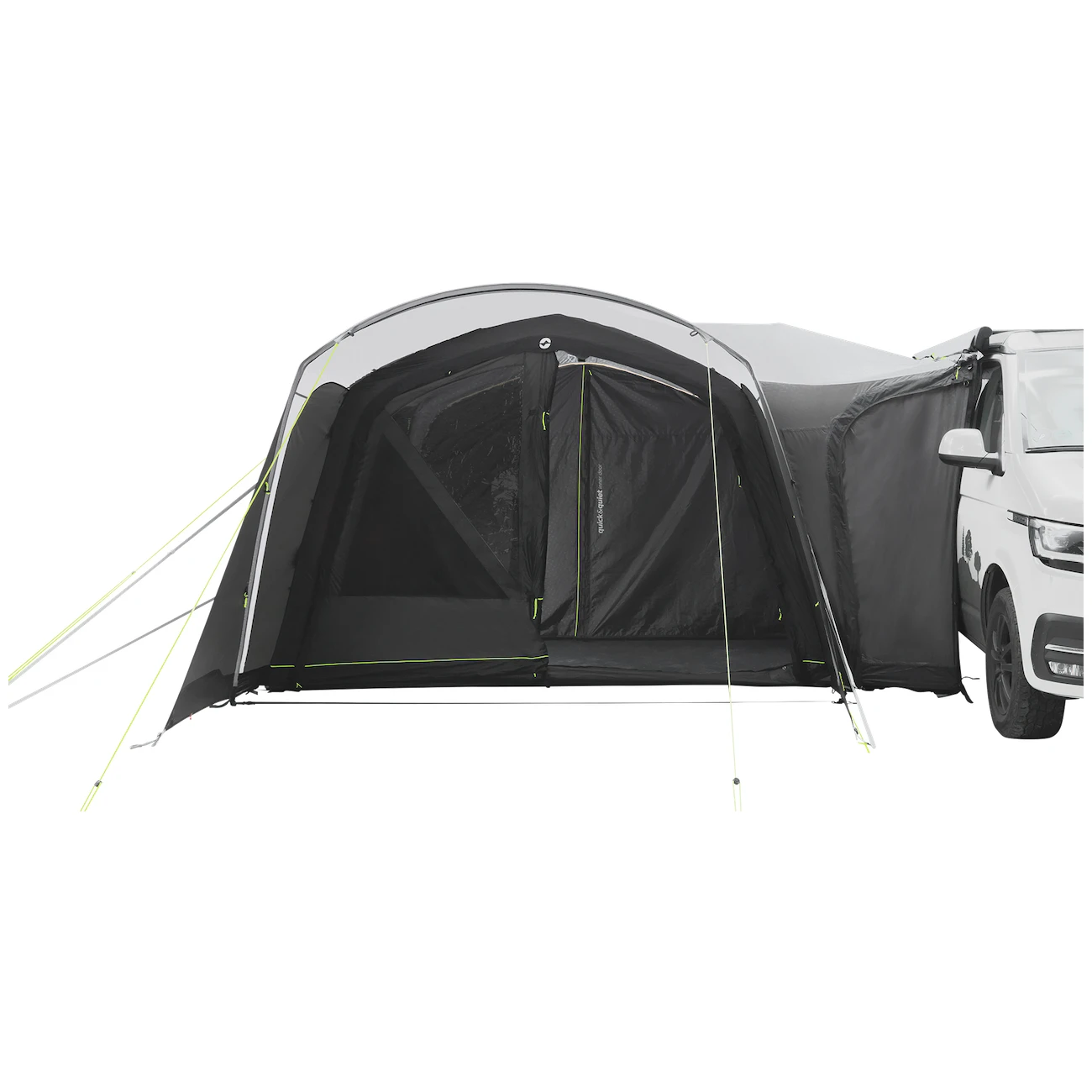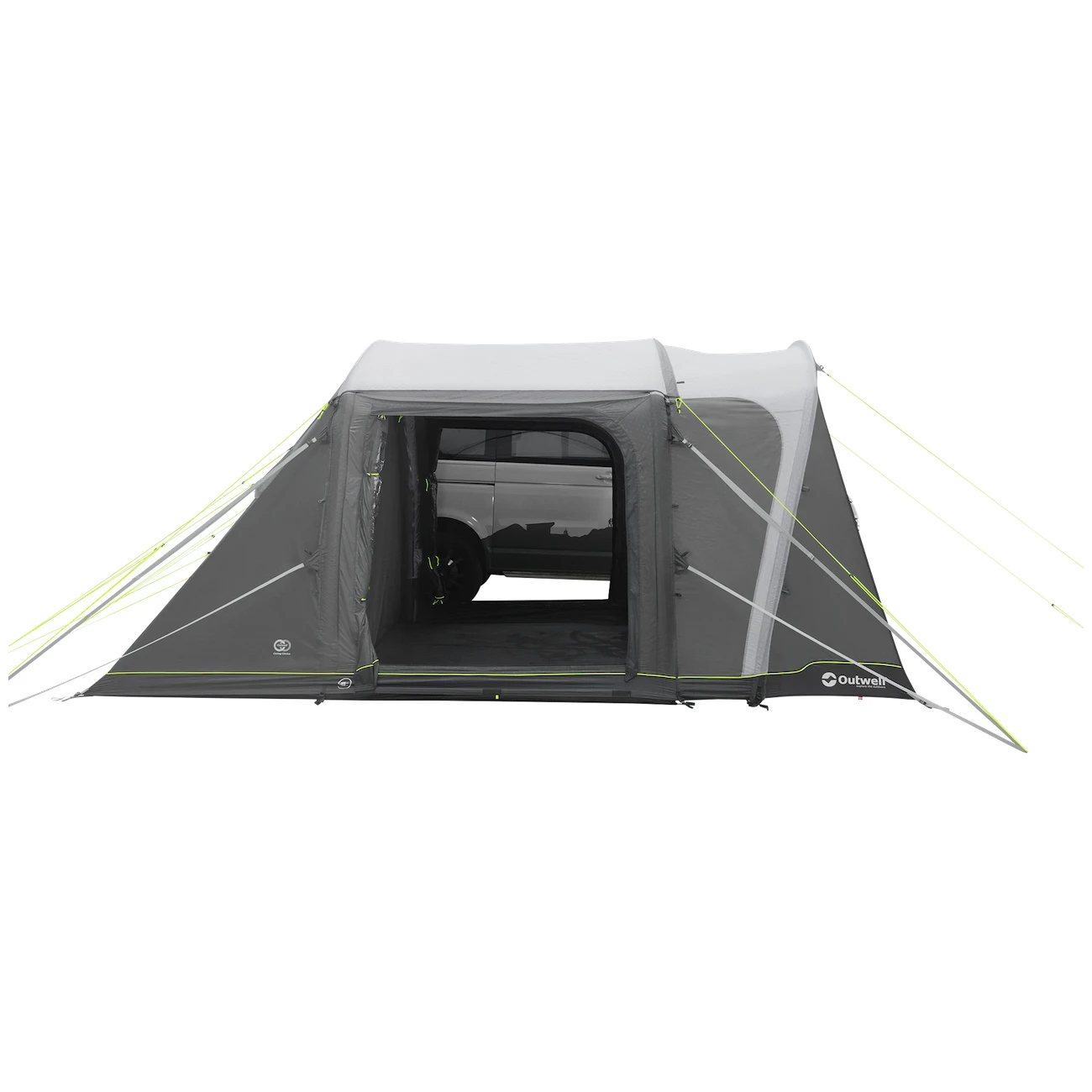 Do namiotu prowadzi duże, główne wejście bez progu, wyposażone w moskitierę oraz pionową przednią ścianę z daszkiem. Można go całkowicie złożyć na bok, aby nie zwisał. Pozostałe dwa wejścia boczne znajdujące się naprzeciwko siebie umożliwiają całkowite otwarcie namiotu. Duże przyciemniane szyby zapewniają dużo światła, ale także ochronę przed promieniowaniem UV i prywatność. Można je zaciągnąć zasłonami.