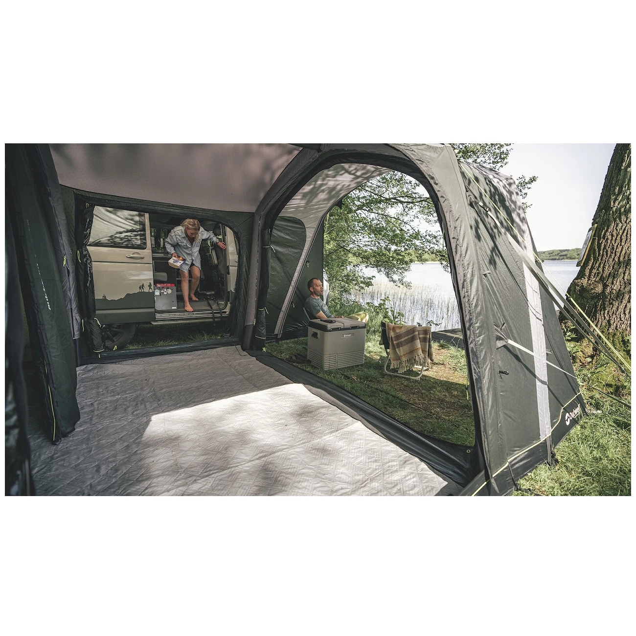 Dmuchany przedsionek do kampera Jones M PowerAir marki Outwell to doskonały wybór dla miłośników podróży, którzy z pewnością docenią szybki montaż i wystarczającą ilość chronionej przestrzeni.