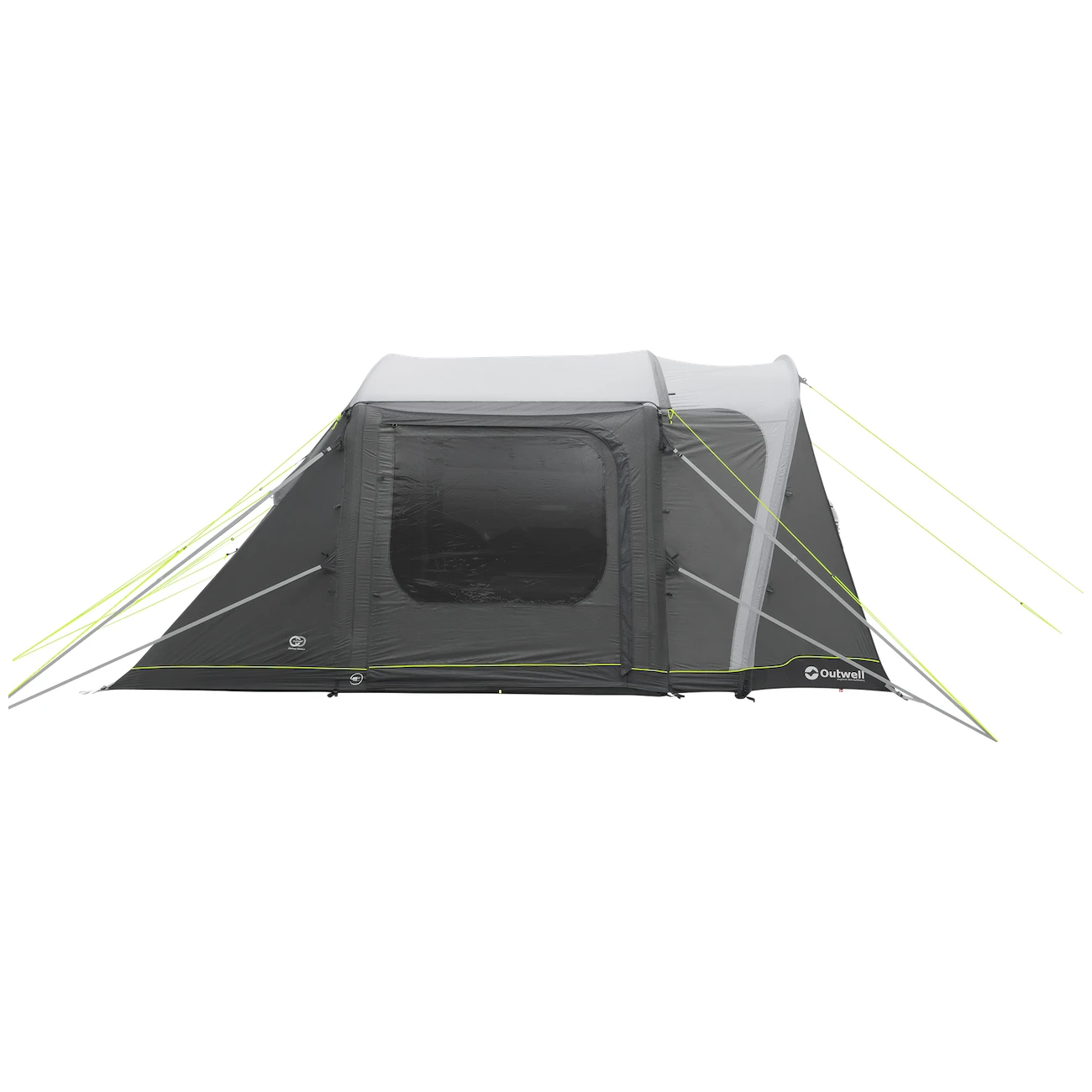 Nadmuchiwana konstrukcja Power Air System jest złożona z wstępnie uformowanych, oddzielnych komór powietrznych. Zapewniają one stabilność namiotu wraz z pałąkami z włókna szklanego, stali, szpilkami i linkami. Śledzie są oznaczone kolorami, dzięki czemu już na pierwszy rzut oka widać, który z nich jest gdzie, aby spełnić idealną funkcję. Liny są zawsze starannie zapakowane na zewnętrznej plandece, co jest bardzo praktyczne, ponieważ nie plączą się podczas pakowania. Aerodynamiczny kształt Aerodynamic Storm Protection 10 zapewnia ochronę przed wiatrem do 102 km/h.