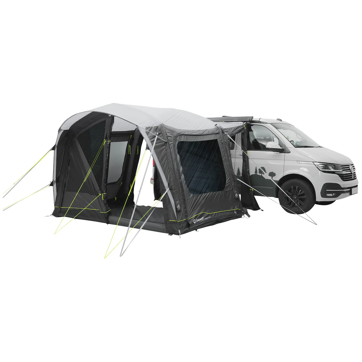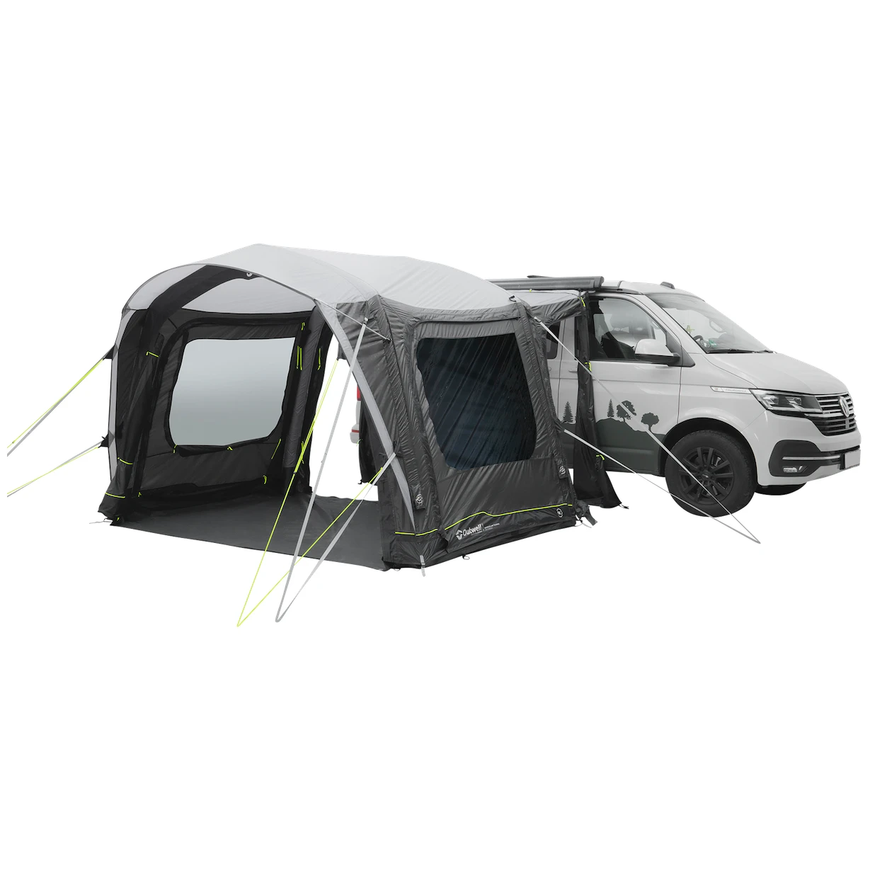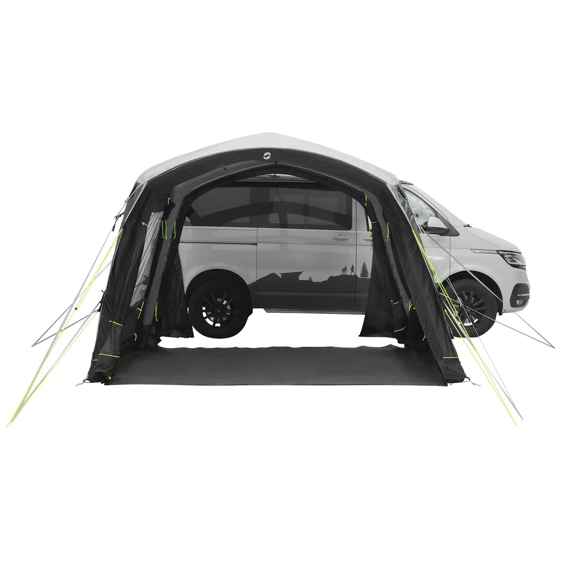 Do namiotu prowadzi główne, duże wejście bez progu z moskitierą. Można je całkowicie odsunąć na bok, aby nie przeszkadzało, lub otworzyć tylko od góry dla dodatkowej wentylacji. Pozostałe dwa wejścia boczne znajdujące się naprzeciwko siebie umożliwiają całkowite otwarcie namiotu. Duże przyciemniane szyby zapewniają dużo światła, ale także ochronę przed promieniowaniem UV i prywatność. Można je zaciągnąć zasłonami i zaciemnić przestrzeń dla lepszego snu.