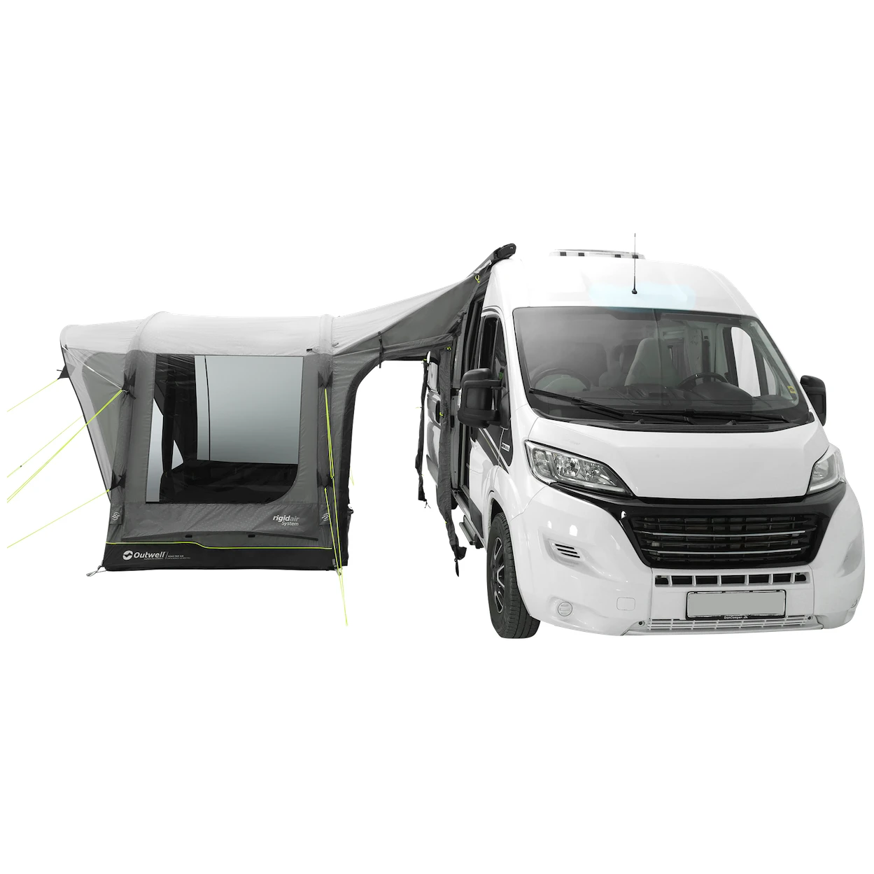 Nadmuchiwana konstrukcja Rigid Air System składa się ze wstępnie ukształtowanych oddzielnych komór powietrznych. Zapewniają one stabilność namiotu wraz ze wspornikami z włókna szklanego, kołkami rozporowymi i linami. Śledzie są oznaczone kolorami, dzięki czemu już na pierwszy rzut oka widać, który z nich jest gdzie, aby spełnić idealną funkcję. Liny są zawsze starannie zapakowane na zewnętrznej plandece, co jest bardzo praktyczne, ponieważ nie plączą się podczas pakowania. Aerodynamiczny kształt Aerodynamic Storm Protection 10 zapewnia ochronę przed wiatrem do 102 km/h.