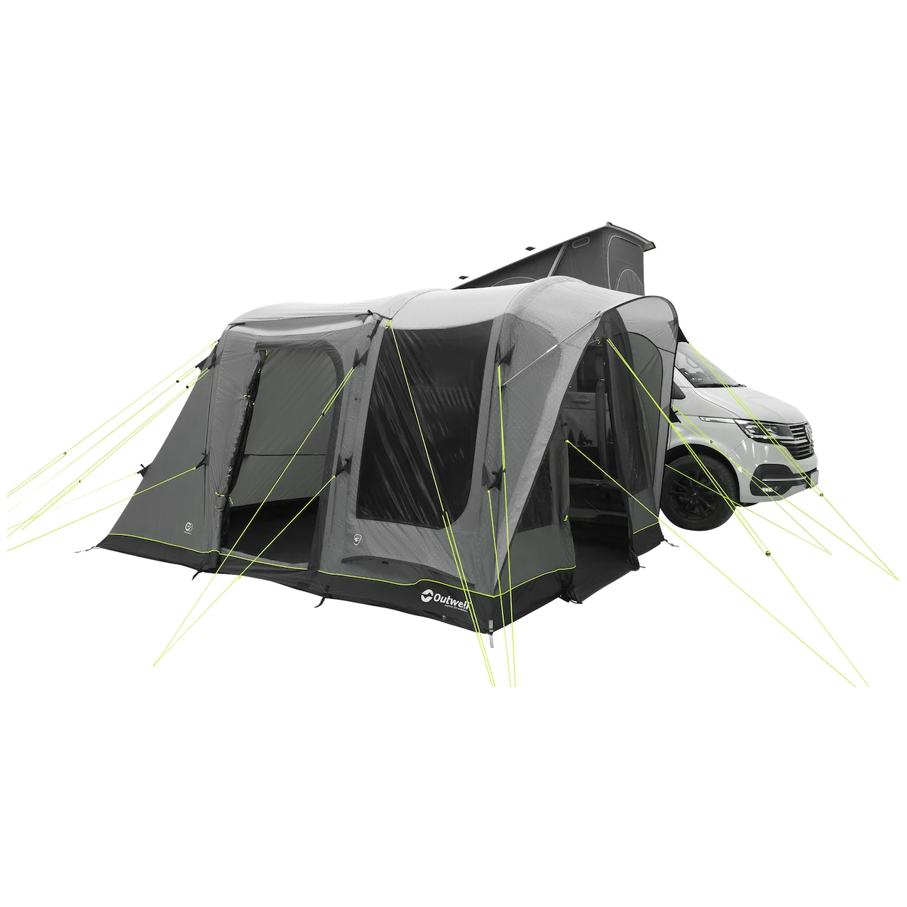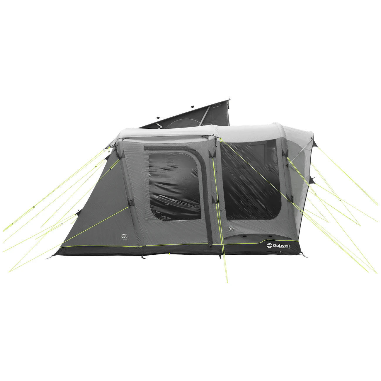 Główne wejście do namiotu ma duże wejście przystosowane dla wózków inwalidzkich z moskitierą i baldachimem. Można go całkowicie złożyć na bok, aby nie zwisał. Pozostałe dwa boczne wejścia naprzeciwko siebie znajdują się po stronie samochodu. Duże przyciemniane szyby zapewniają dużo światła, ale także ochronę przed promieniowaniem UV i prywatność. Można je zaciągnąć zasłonami.