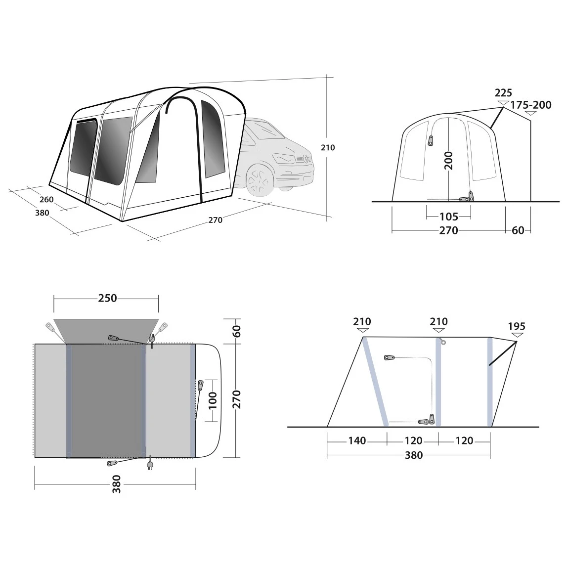 - 380 x 270 x 210 cm