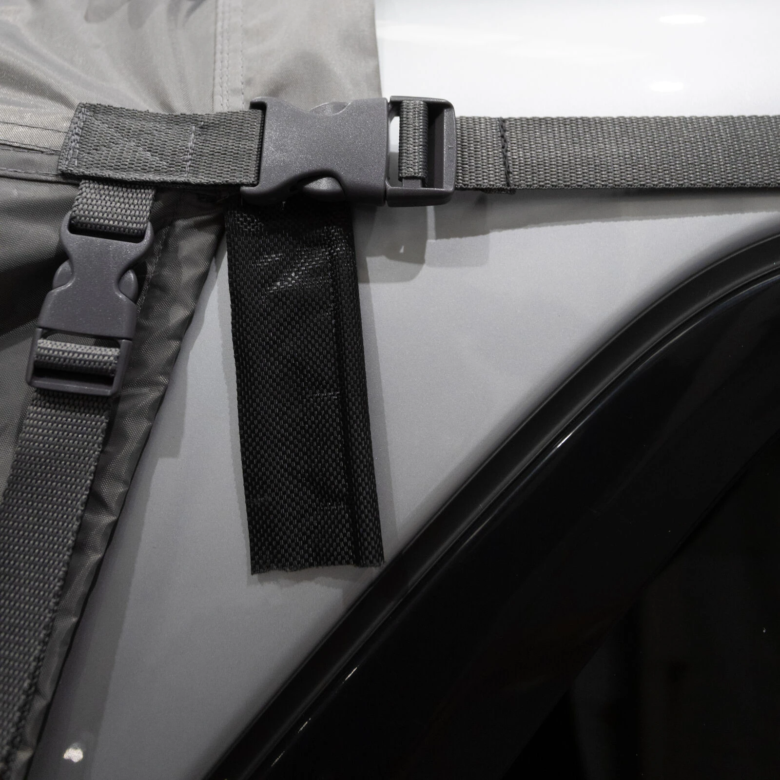 Mocowanie jest maksymalnie proste – przedsionek można przymocować za pomocą pasków bez konieczności używania listew kedrowych, jednocześnie oferuje również tradycyjne możliwości mocowania, w tym kedry lub uchwyty na drążki dachowe. Wytrzymała tkanina SentinelActive 150D z technologią ColourLok Eco zapewnia wodoodporność, niską wagę i długą żywotność przy zachowaniu kompaktowych wymiarów po spakowaniu.