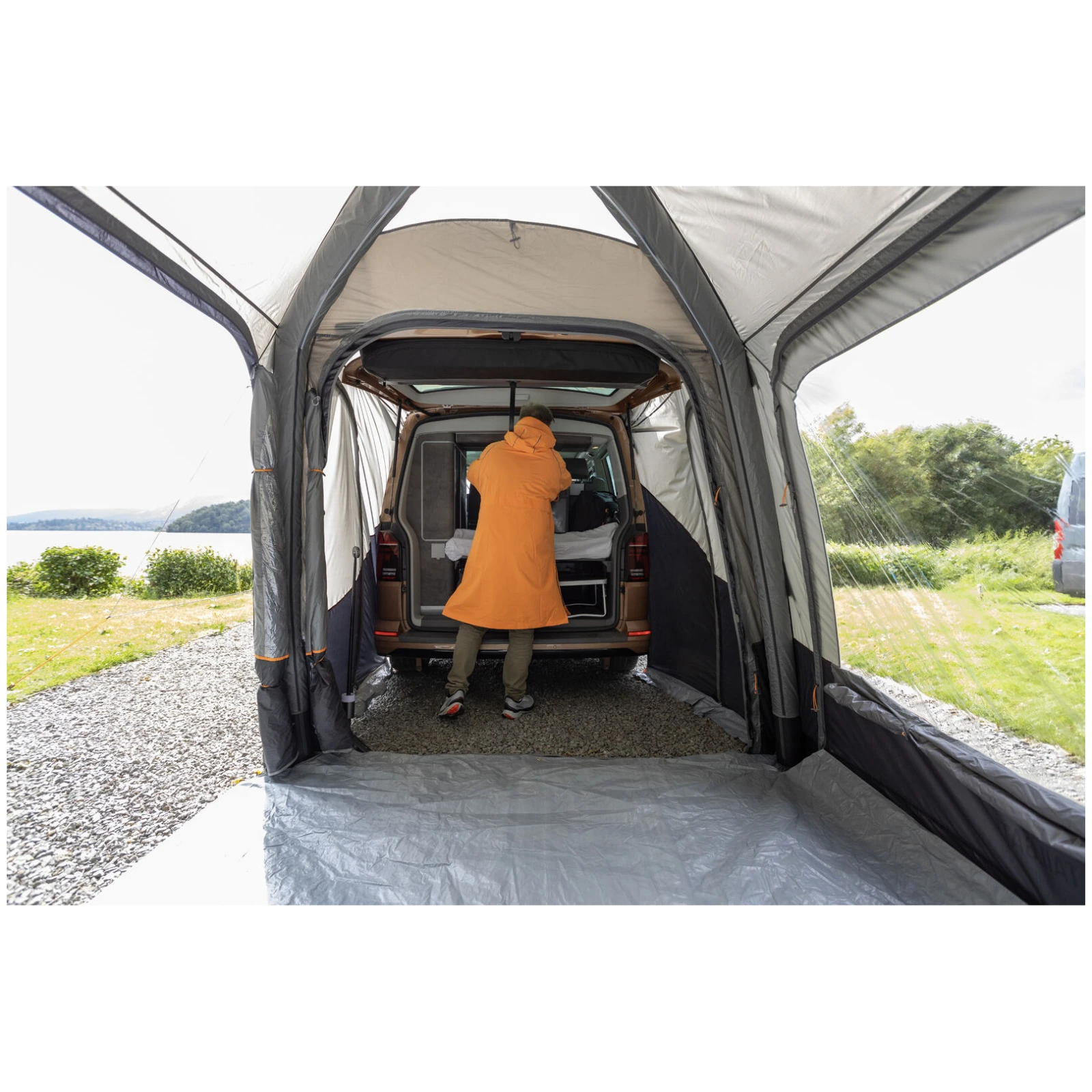 Przedsionek na tylną klapę AirHub II Low marki Vango został zaprojektowany specjalnie z myślą o tyle pojazdu i stanowi idealne rozwiązanie dla par lub podróżujących solo, którzy chcą szybko stworzyć zadaszoną przestrzeń życiową podczas krótkich i dłuższych postojów. Nadmuchiwana konstrukcja AirBeam® umożliwia bardzo szybkie rozstawienie i złożenie w ciągu zaledwie kilku minut. System All In One Inflation umożliwia nadmuchanie całego przedsionka jednym zaworem, co oszczędza czas i energię.