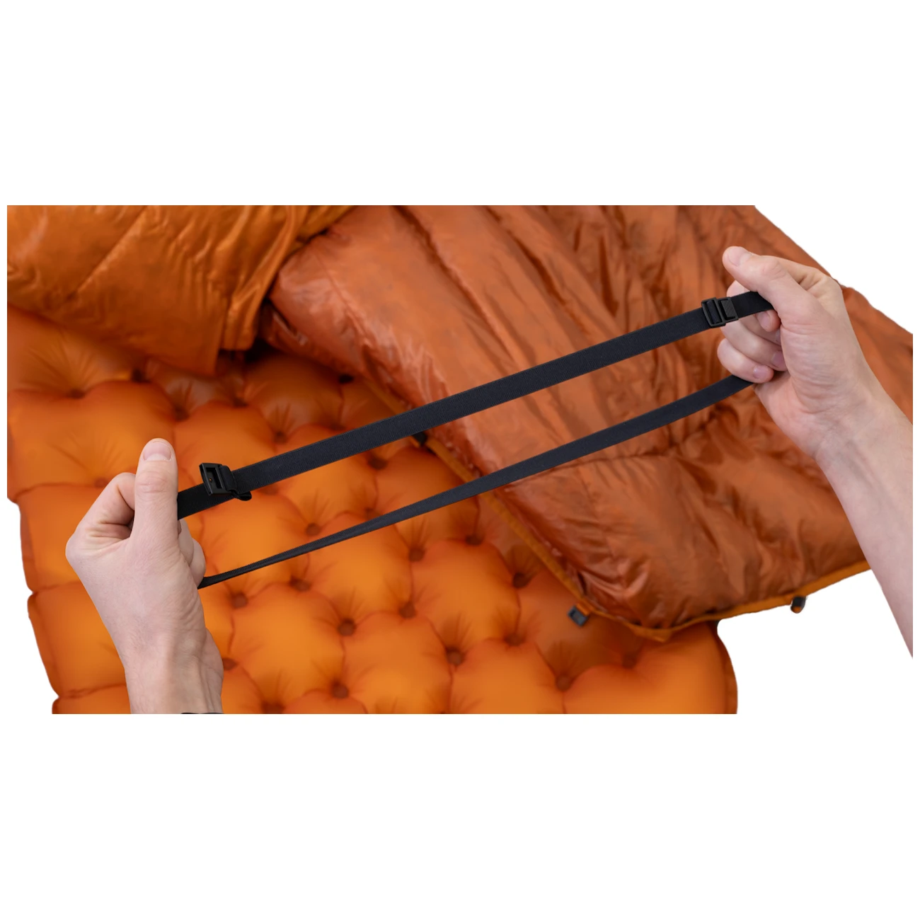 Oczywiście, kurtka wyposażona jest w wysokiej jakości zamek błyskawiczny na całej długości z zabezpieczeniem przed zahaczaniem. Zewnętrzny materiał ripstop jest mocny i odporny na uszkodzenia mechaniczne. Kilka punktów mocowania z elastycznym ściągaczem świetnie utrzymuje kołdrę na macie samopompującej.