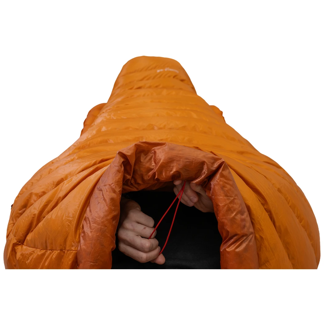 Konstrukcja optymalizuje objętość puchu i efektywność cieplną bez zbędnego gabarytu. Posiada wypełnienie z puchu gęsiego o sprężystości 850 cuin i stosunku puchu do pierza 90/10, które doskonale izoluje. Pomaga w tym nowo ukształtowany kołnierz termiczny, który ściśle otula ramiona i zapobiega utracie ciepła. Kominiarka posiada ściągacze po obu stronach. Wygodny kształt mumii 3D poprawia izolację termiczną i zapewnia komfort. Przestrzeń wokół stóp jest specjalnie zaprojektowana w kształcie płetwy rekina, dzięki czemu nogi mogą pozostać rozciągnięte w naturalnej pozycji przez całą noc i zapewniają dodatkową izolację.