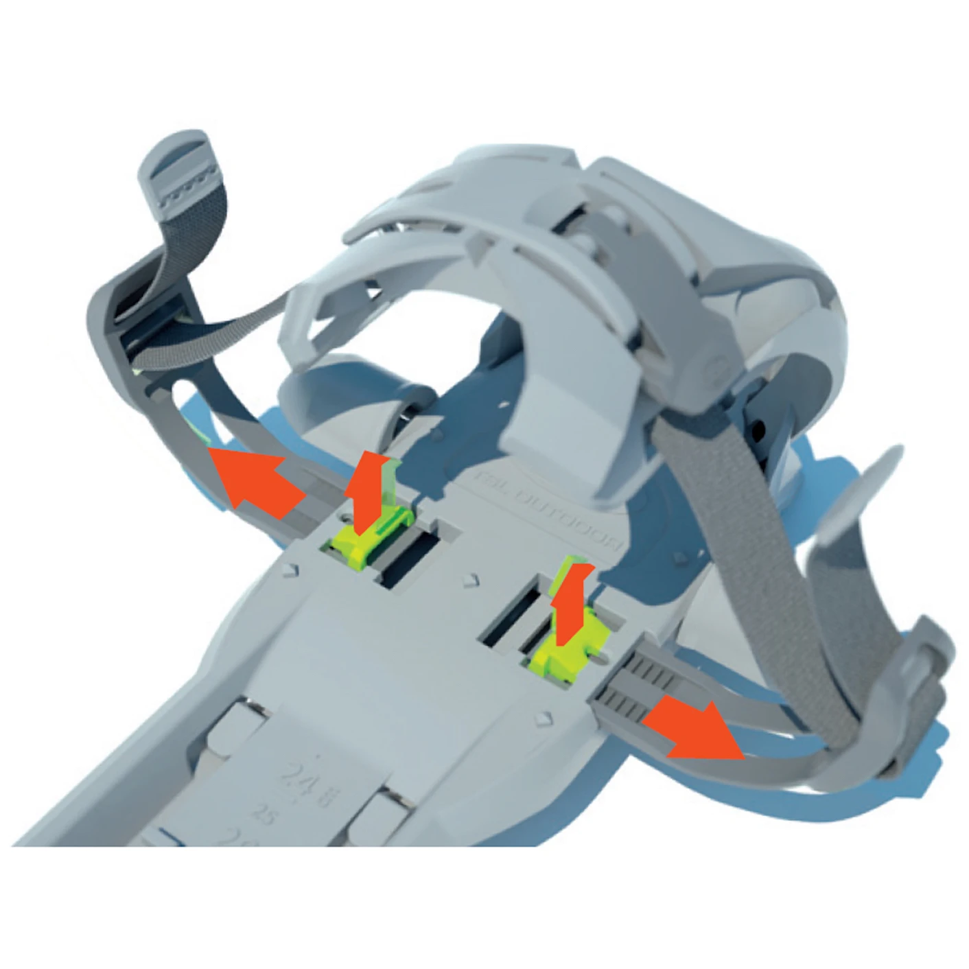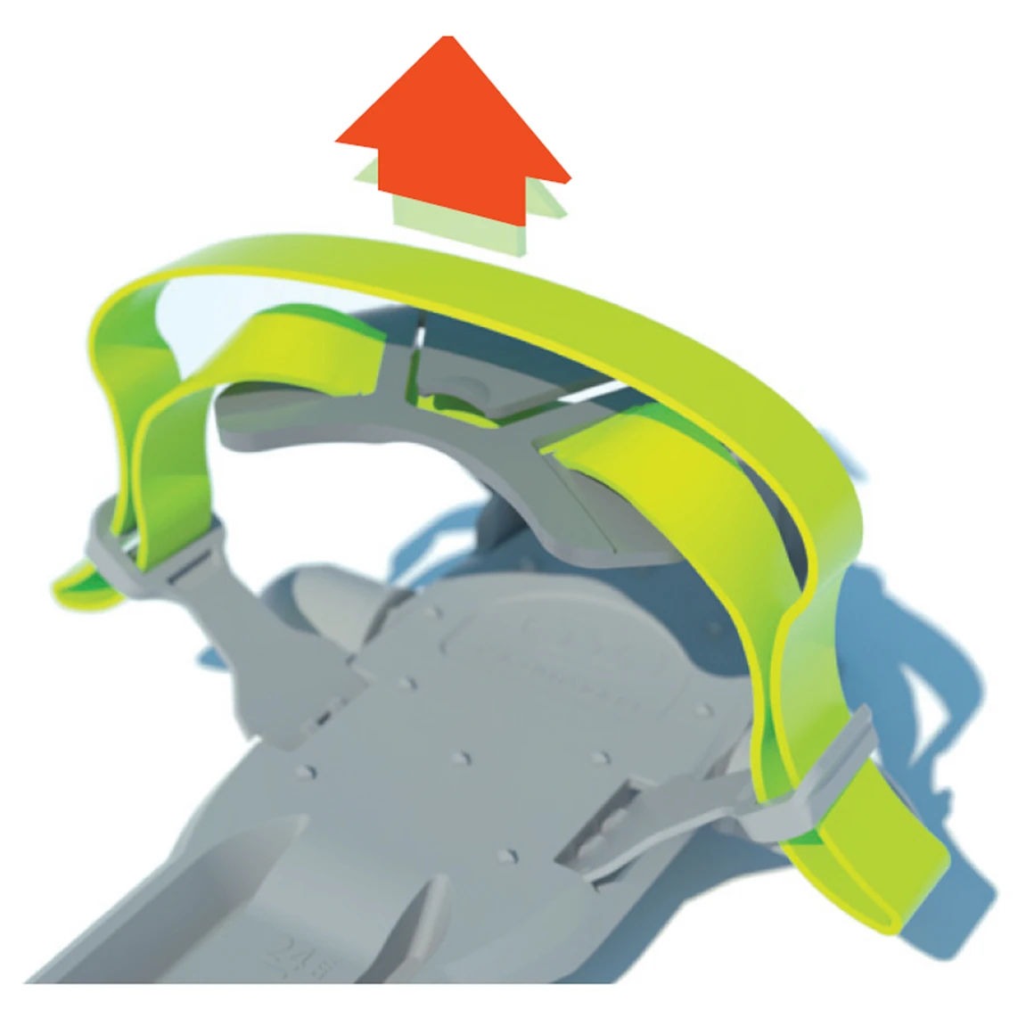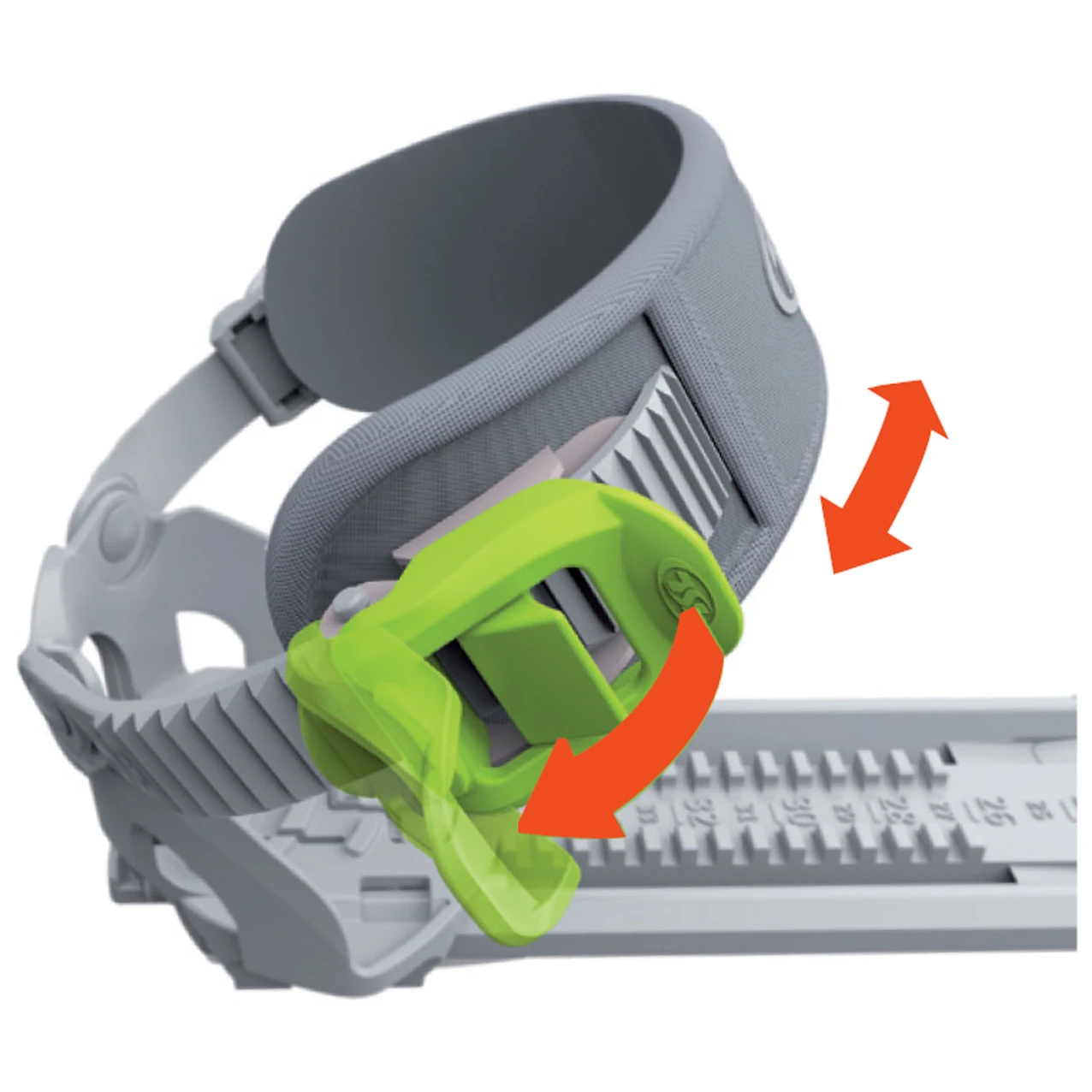 System mocowania BOA® poprawia precyzję chodzenia, mocno łącząc stopę z rakietą śnieżną. Regulacja za pomocą pokrętła jest szybka i łatwa. Podobnie, mocowanie nogi w okolicy kostki znajduje się w podobnej pozycji. Rozwiązaniem jest pasek wykonany z wytrzymałego materiału, który jest wzmocniony. Pasek zmniejsza nacisk na kostkę i rozkłada go równomiernie na całą stopę. Wystarczy poluzować go jedną ręką za pomocą grzechotki. Funkcja Lock Adjustment umożliwia dostosowanie rozmiaru całego wiązania do rozmiaru buta. Ponownie, ustawienie pozostaje w tej samej pozycji do momentu samodzielnej zmiany.
