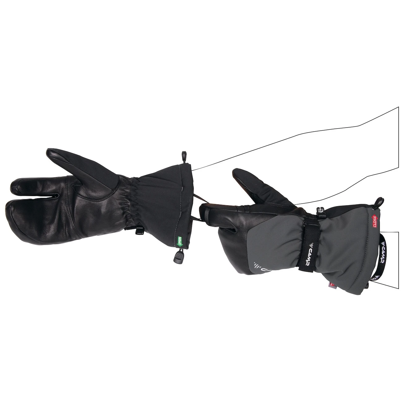 Rękawiczki mają przedłużony mankiet na kurtkę z elastycznym ściągaczem. System Open-Close poprawia izolację termiczną i można go obsługiwać jedną ręką – wystarczy pociągnąć za stronę zamykającą, aby dokręcić, i za stronę otwartą, aby poluzować i otworzyć.