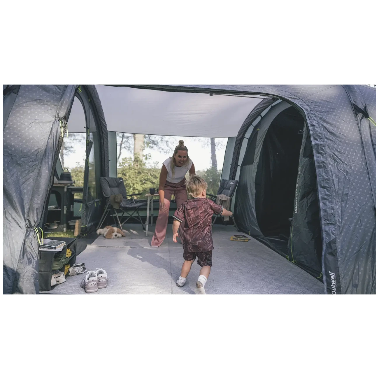 Sacramento 4 Air to dmuchany namiot rodzinny z kolekcji Deluxe Air duńskiej marki Outwell, który oferuje nocleg dla 4 osób w dwóch sypialniach, z przestronnym przedsionkiem i daszkiem.