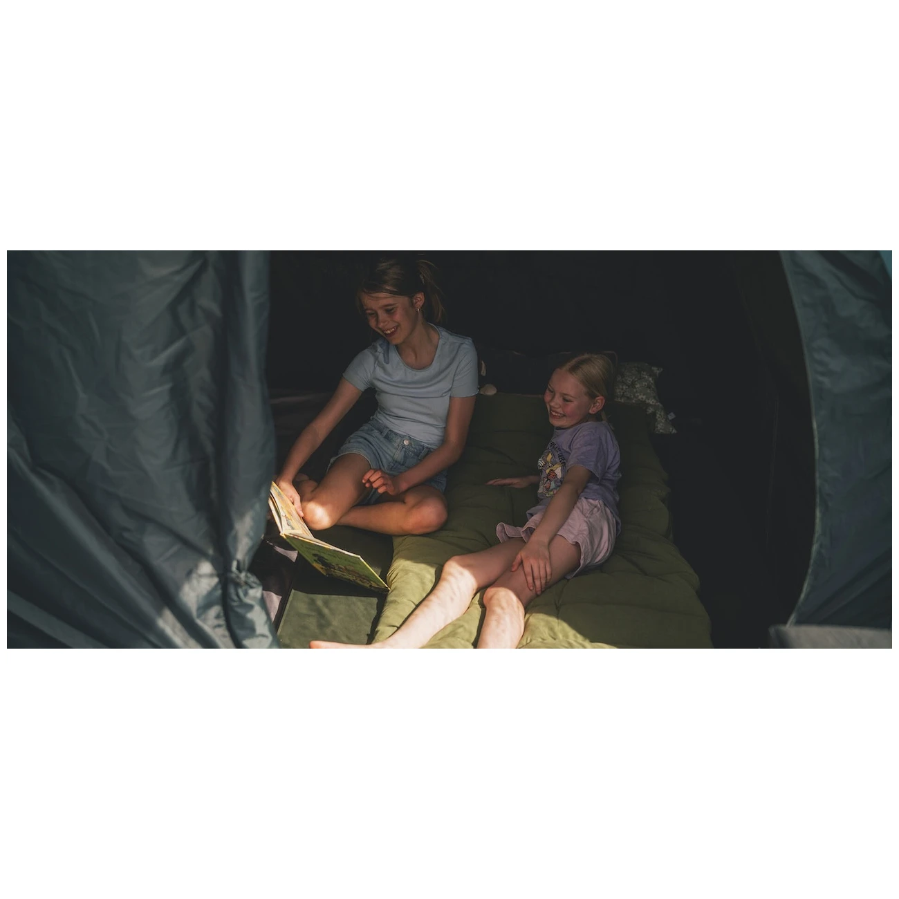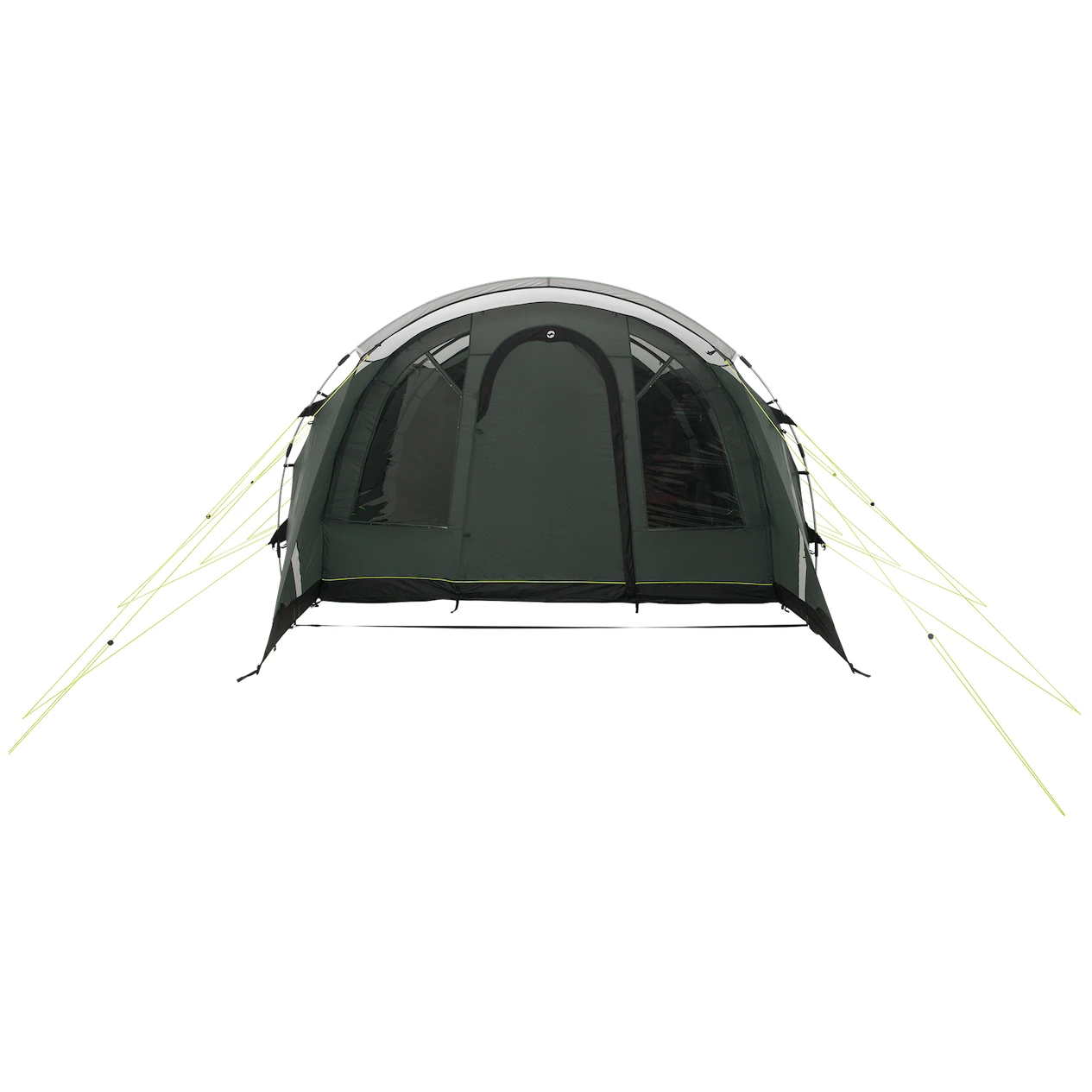 Do namiotu prowadzą dwa wejścia przystosowane dla wózków inwalidzkich z moskitierami, które można całkowicie złożyć na jedną stronę. Przestronna przednia weranda ma duży daszek przed wejściem, zdejmowaną podłogę, lekki dach i przyciemniane okna, które zapewniają wystarczające oświetlenie, ale także chronią przed słońcem i promieniami UV. Jeśli potrzebujesz więcej prywatności, po prostu zasuń zasłony do żądanej wysokości okna. Za korytarzem znajdują się dwie zaciemnione sypialnie z moskitierami, zapewniające niezakłócony sen. Drzwi posiadają wszyte paski magnetyczne, które umożliwiają szybkie i ciche wejście do namiotu. Oczywiście dostępne są również zamki błyskawiczne zapewniające szczelniejsze zamknięcie.