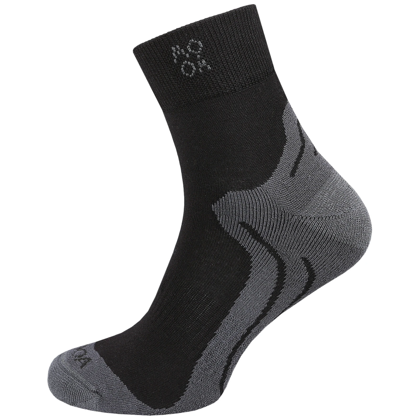 Wzmocniona pięta i palce zapewniają większą trwałość w miejscach narażonych na obciążenia, a elastyczny ściągacz na podbiciu pomaga utrzymać skarpetę na miejscu nawet podczas intensywnego ruchu. Górny ściągacz jest mocny, a jednocześnie delikatny dla nogi – nie uciska i nie ogranicza krążenia krwi.