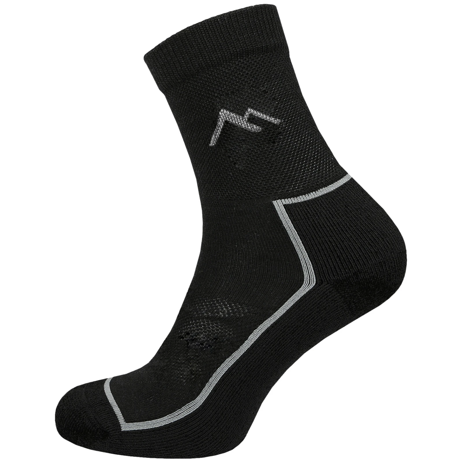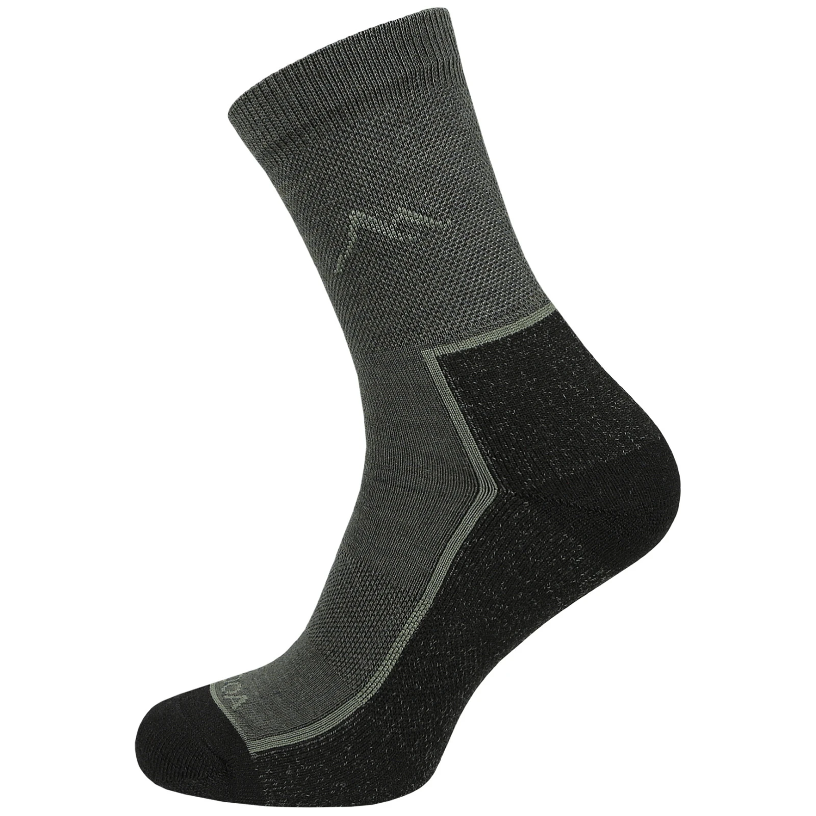 Połączenie delikatnej wełny merino i wytrzymałych włókien syntetycznych zapewnia zrównoważone właściwości izolacyjne i wysoki poziom komfortu. Wełna merino jest przyjemna w dotyku, ma naturalne właściwości antybakteryjne i doskonałą termoregulację. Włókna syntetyczne szybko odprowadzają pot, dzięki czemu skarpetki łatwo dopasowują się do intensywności twojego ruchu.