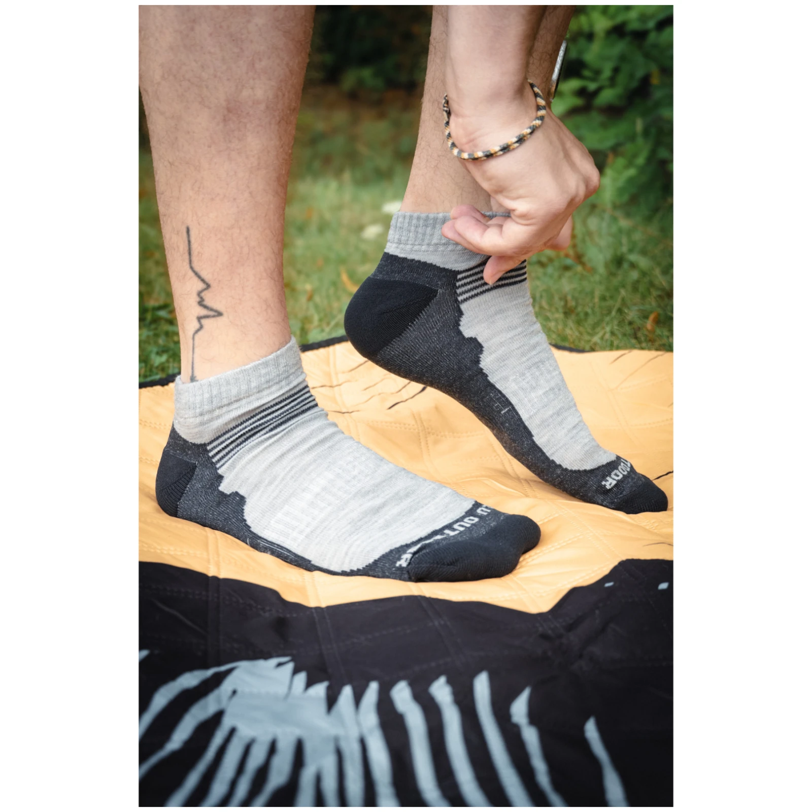 Zulu Merino Summer to lekkie, niskie skarpety na lato z domieszką wełny merino. Wyrafinowane obszycie gwarantuje, że skarpetki nie zsuną się, a wzmocniona pięta i palce zapewniają większą trwałość, odporność i wygodę. Skarpetki są przeznaczone do lekkich obciążeń, tj. do noszenia na co dzień lub do lekkich aktywności sportowych.