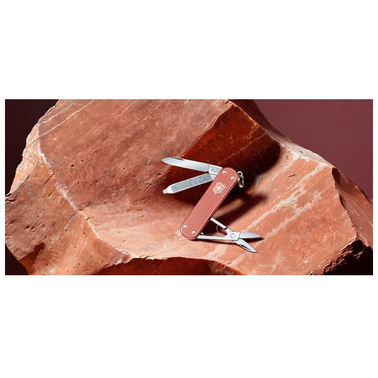 Classic Alox LE 2024 z Victorinox to mały scyzoryk z 5 funkcjami. Jest to najmniejszy rozmiar noży z edycji Alox. Okładki są wytłaczane z aluminium i pokryte warstwą antykorozyjną.