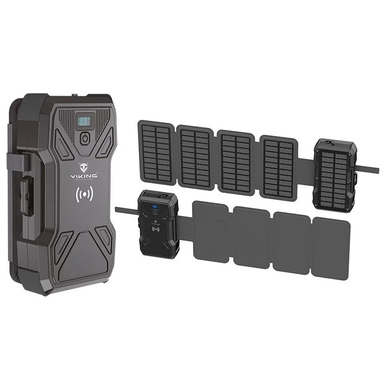 Solarny powerbank TYR III marki Viking Technology to wydajne i niezawodne źródło energii dla wszystkich, którzy chcą być niezależni od sieci elektrycznej. Dzięki wysokiej pojemności 30 000 mAh (111 Wh) i rozkładanym panelom słonecznym o mocy 8 W umożliwia efektywne ładowanie urządzeń elektronicznych bezpośrednio z energii słonecznej. Jest to idealny wybór na długie wyprawy na łono natury, ekspedycje, wędrówki i kempingi.