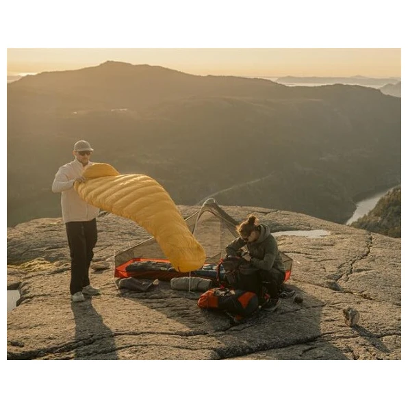 Jest wypełniona kaczym puchem o wypełnieniu 700 cuin i stosunku puchu 95/5, który doskonale izoluje. Pomaga w tym nowo ukształtowany kołnierz termiczny, który ściśle otula ramiona i zapobiega utracie ciepła. Kominiarka posiada ściągacze po obu stronach. Wygodny kształt mumii 3D poprawia izolację termiczną i zapewnia komfort. Obszar wokół stóp jest specjalnie ukształtowany jak płetwa rekina, co pozwala stopom pozostać rozciągniętymi w naturalnej pozycji podczas nocy.