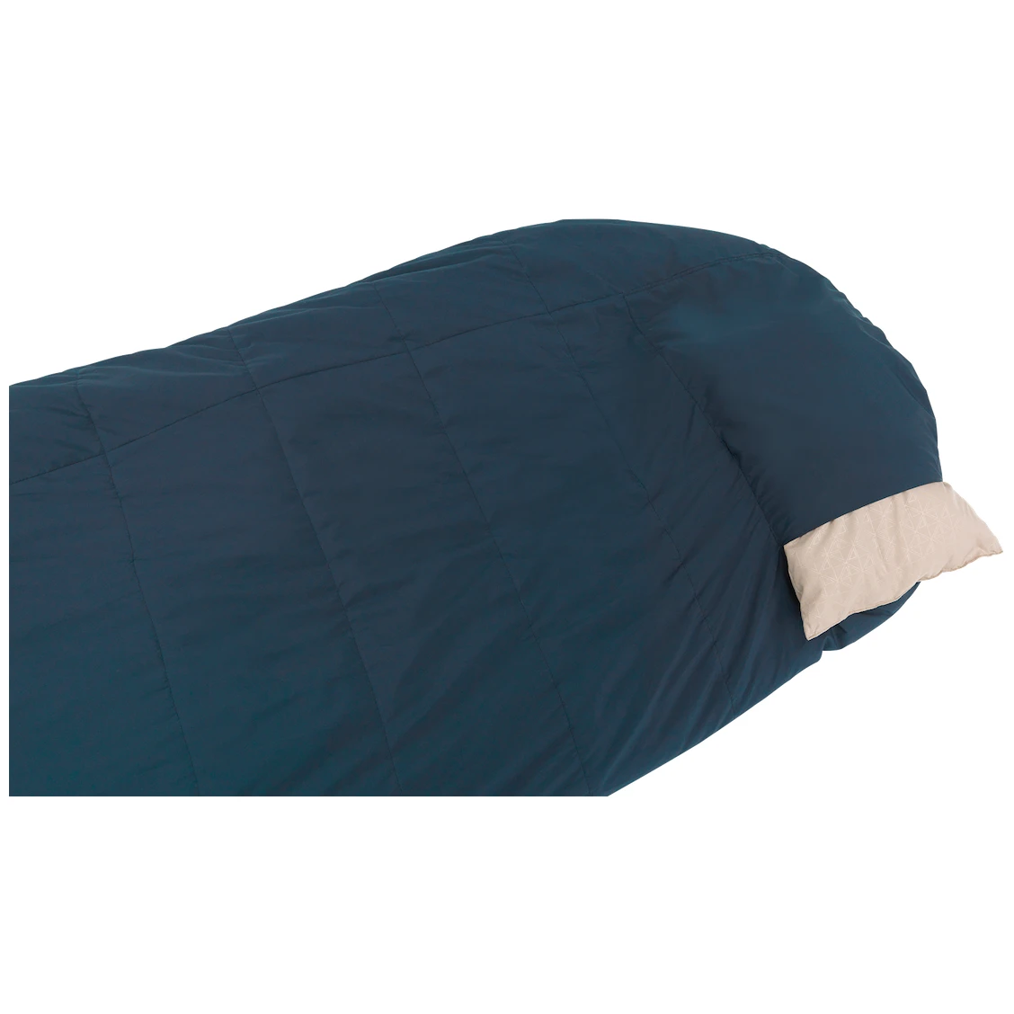 Wypełnienie to pochodzący z recyklingu materiał Isofill Premium wykonany z drobnych , pustych w środku włókien, które są silikonowane, co zapewnia dodatkową miękkość. Śpiwór jest dwustronny, więc możesz używać chłodniejszej strony podczas ciepłej nocy i cieplejszej strony podczas chłodniejszej nocy. Oczywiście śpiwór można rozpiąć w koc. W kapturze znajduje się zintegrowana poduszka zapewniająca maksymalny komfort.