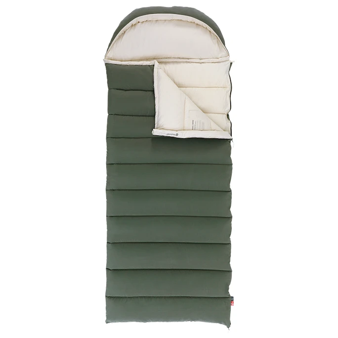 Śpiwór można łatwo i szybko rozpiąć za pomocą wysokiej jakości dwukierunkowego zamka YKK, który zamieni go w przestronny koc. Zamek śpiworu jest osłonięty listwą, dzięki czemu nie dochodzi do niepotrzebnych strat ciepła. Dla maksymalnego komfortu w trybie koca z pewnością docenisz również odpinany kaptur z wyjmowaną poduszką. W rogach znajdują się haczyki, w które można bezpośrednio włożyć wkładkę do śpiwora, aby zwiększyć warunki higieniczne i przedłużyć żywotność śpiwora. W zestawie znajduje się również praktyczny kwadratowy pokrowiec kompresyjny, który ułatwia przenoszenie śpiwora.
