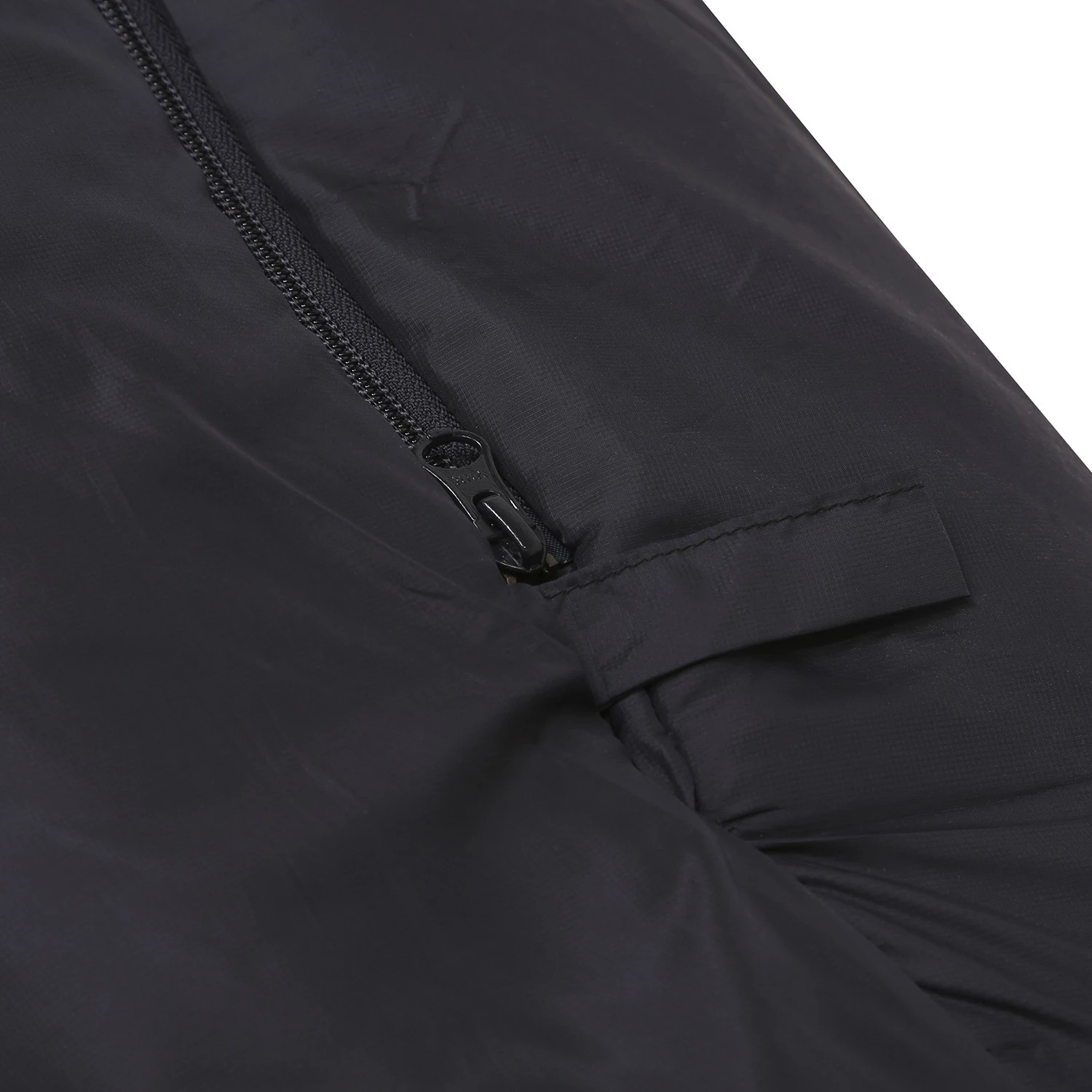 Wystarczająco ciepły Można go połączyć ze śpiworem za pomocą odwrotnego zamka (choć nie jest to zbyt praktyczne) Można go ściągnąć, aby zmniejszyć jego objętość