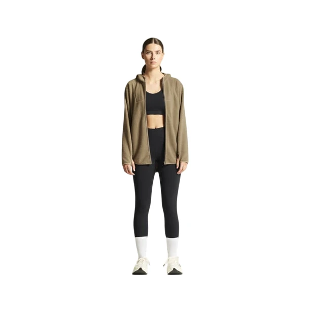 - przyjemny w dotyku materiał (77% poliester z recyklingu, 23% elastan) uzupełniony o ocieplaną podszewkę (82% poliamid z recyklingu, 18% elastan)
