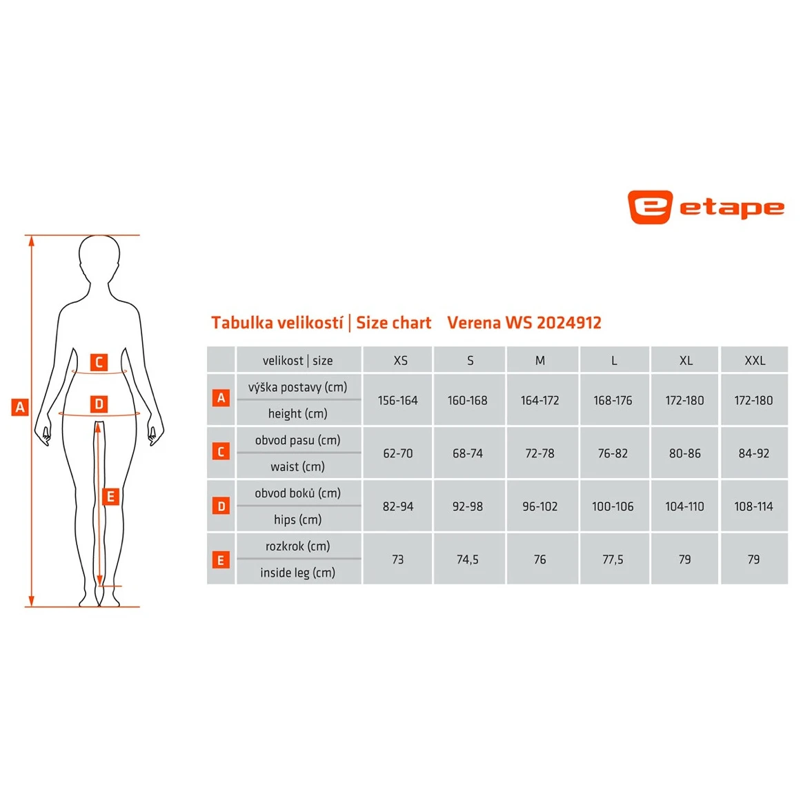 Damskie spodnie Etape Verena WS o luźnym kroju są przeznaczone do szerokiej gamy zimowych lub jesiennych aktywności. Przód i siedzisko wykonane są z materiału SoftShell z membraną i izolacją. Z tyłu kurtki zastosowano materiał ThermoFit, głównie ze względu na odpowiednią oddychalność i odprowadzanie nadmiaru wilgoci od ciała. Spodnie dobrze dopasowuje się dzięki szerokiemu i wygodnemu pasowi, który jest uzupełniony możliwością ściągnięcia sznurkiem.
