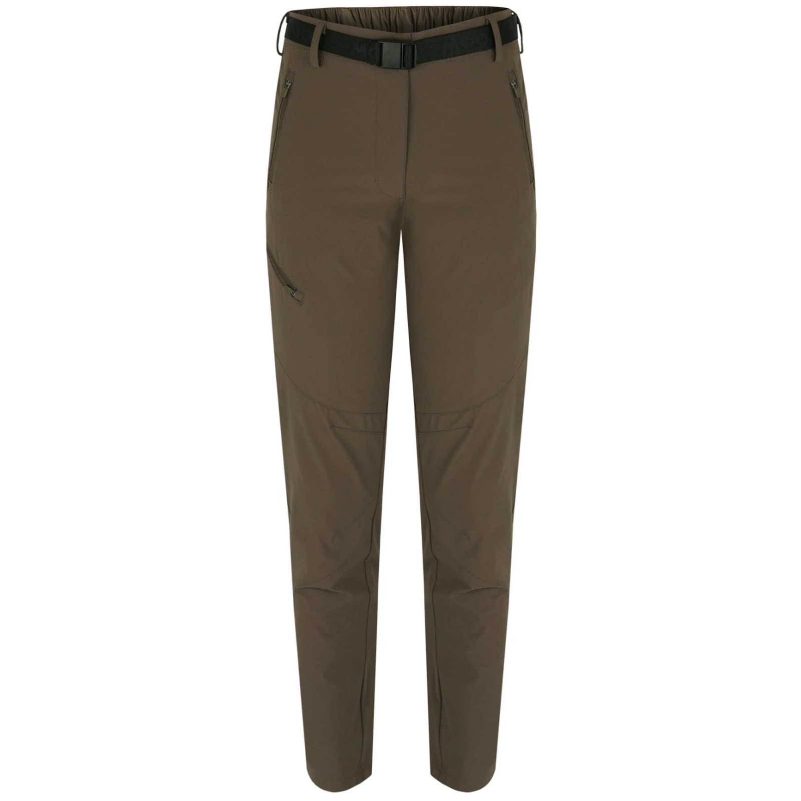 Damskie spodnie MOOA Trek Light to lekkie i wygodne spodnie turystyczne, które dzięki rozciągliwej technologii 4Stretch oferują doskonałą swobodę ruchu i przyjemny komfort podczas całodniowych aktywności. Wykonane są z wytrzymałego materiału nylonowego z powłoką DWR, która pomaga odprowadzać lekką wilgoć i zwiększa ogólną odporność tkaniny na zmienne warunki pogodowe.