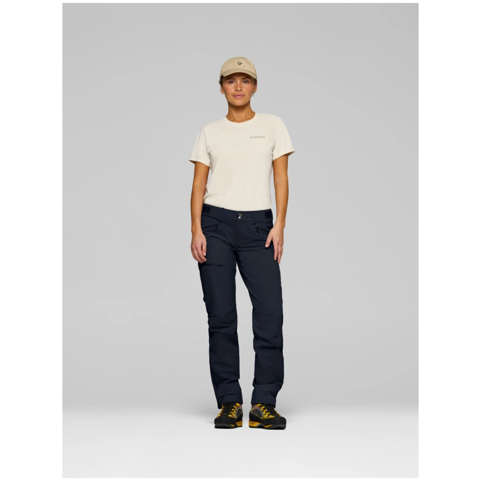 Dolna część nogawek jest rozwiązana zamkiem błyskawicznym z rozszerzającym się klinem i haczykiem na ochraniacze, spodnie pasują zarówno na buty trekkingowe, jak i lekkie buty skiturowe.