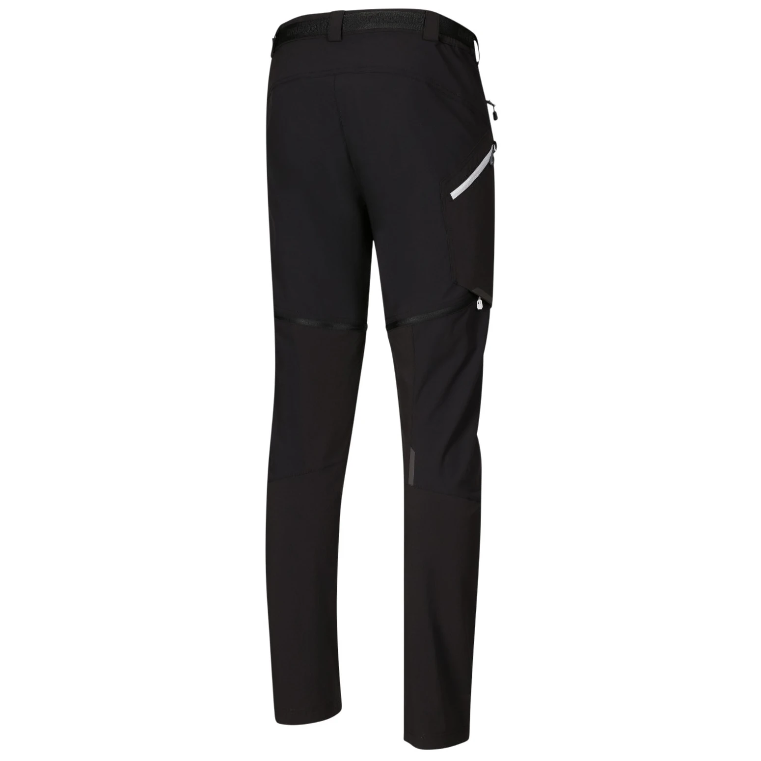 Spodnie posiadają wygodny, lekko elastyczny pas, częściowo na gumce, z regulacją za pomocą paska z klamrą. Do przechowywania drobiazgów służą dwie przednie kieszenie na zamek i boczna kieszeń.