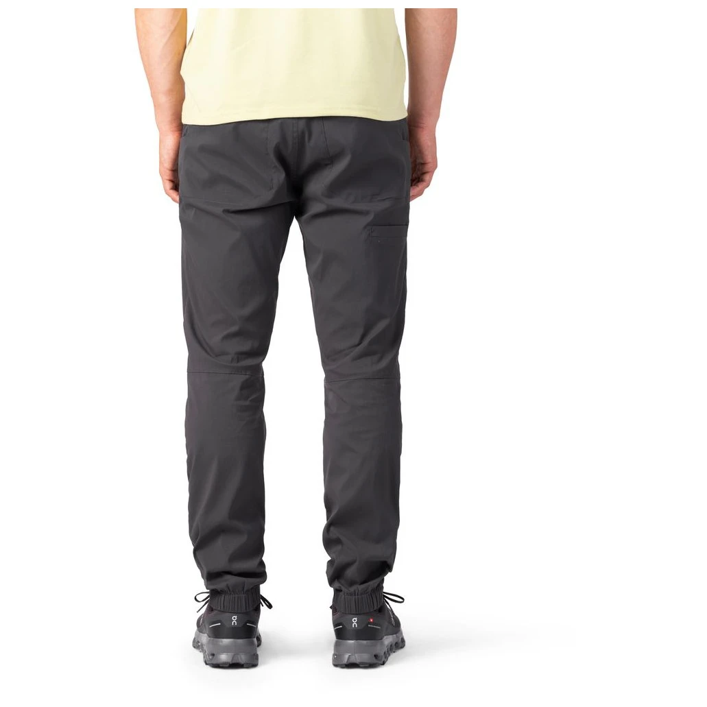 Talia jest częściowo elastyczna, aby zapewnić wygodne dopasowanie, a także ma szlufki na pasek, dzięki czemu można regulować zaciskanie w razie potrzeby. Spodnie mają dwie główne kieszenie z przodu i dwie tylne kieszenie, które zapewniają dużo miejsca do przechowywania małych przedmiotów. Elastyczne zakończenia nogawek przyczyniają się do lepszego dopasowania i ochrony przed niekorzystnymi warunkami.