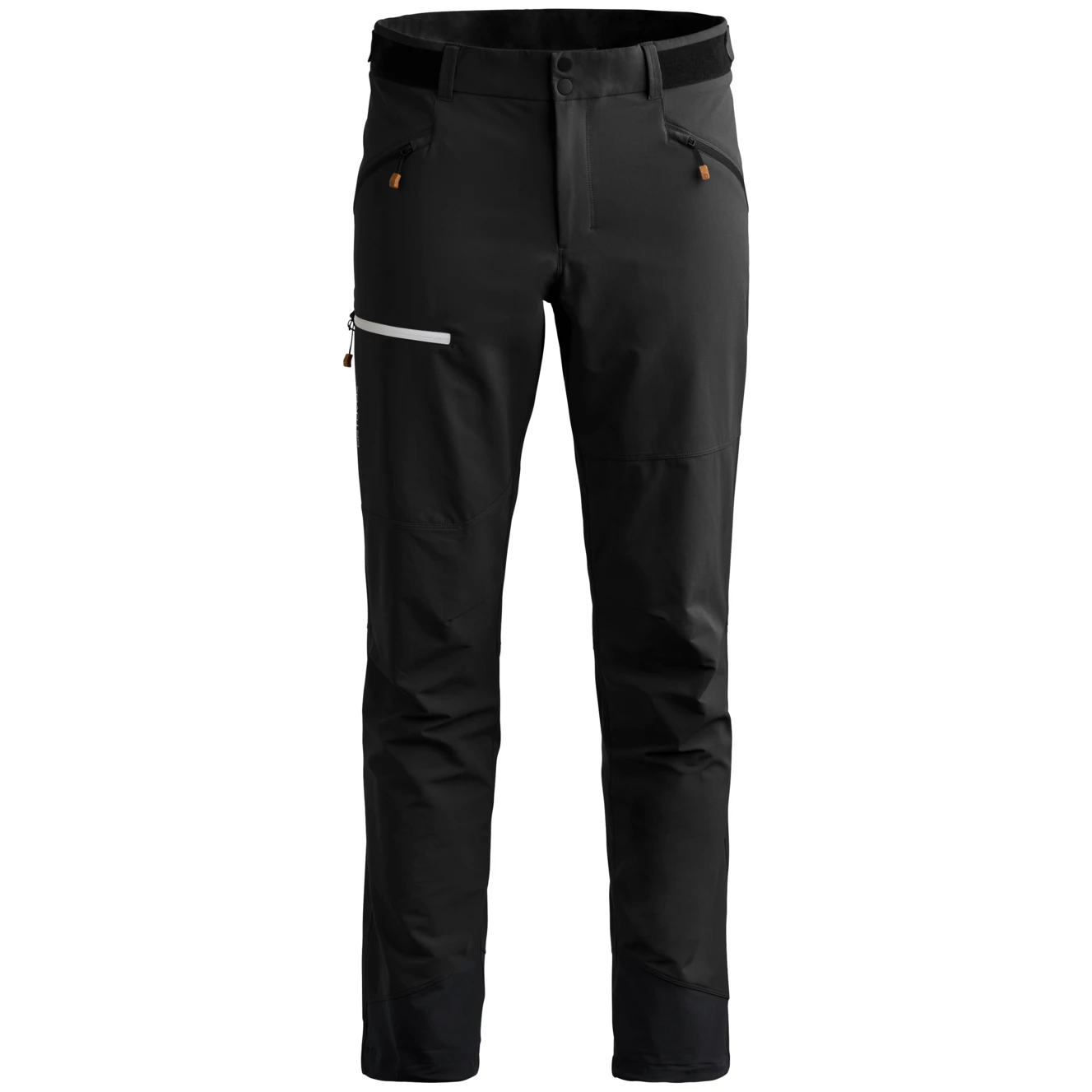 Praktyczne detale podkreślają funkcjonalność spodni: dobrze dopasowany regularny krój, regulowany pas i dolny brzeg dla precyzyjnej adaptacji, dwie kieszenie na bokach i jedna na udzie dla łatwego dostępu do rzeczy, solidne mankiety u kostek z haczykiem na sznurówki, który zapobiega nabieraniu kamyków czy śniegu, oraz ergonomiczny krój dla maksymalnej swobody ruchu w alpejskim terenie.