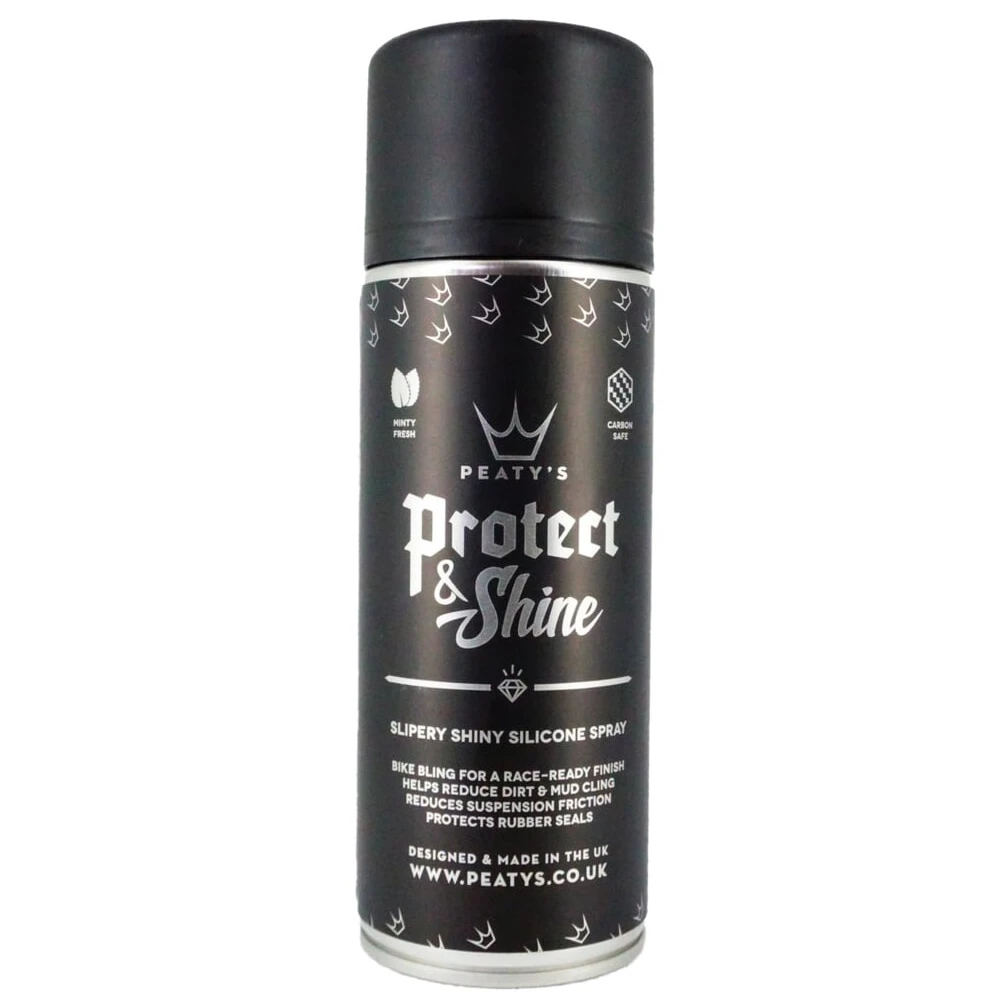 Peaty’s Protect&Shine! Stosuj na lakiery, metale, tworzywa sztuczne lub powierzchnie karbonowe. Rozjaśnij kolory, zmniejsz tarcie ruchomych elementów, chroń gumowe i plastikowe części przed wysychaniem i degradacją. Tego wszystkiego, a nawet więcej, możesz oczekiwać od sprayu Protect&Shine, który po aplikacji tworzy na powierzchni ochronny film silikonowy.