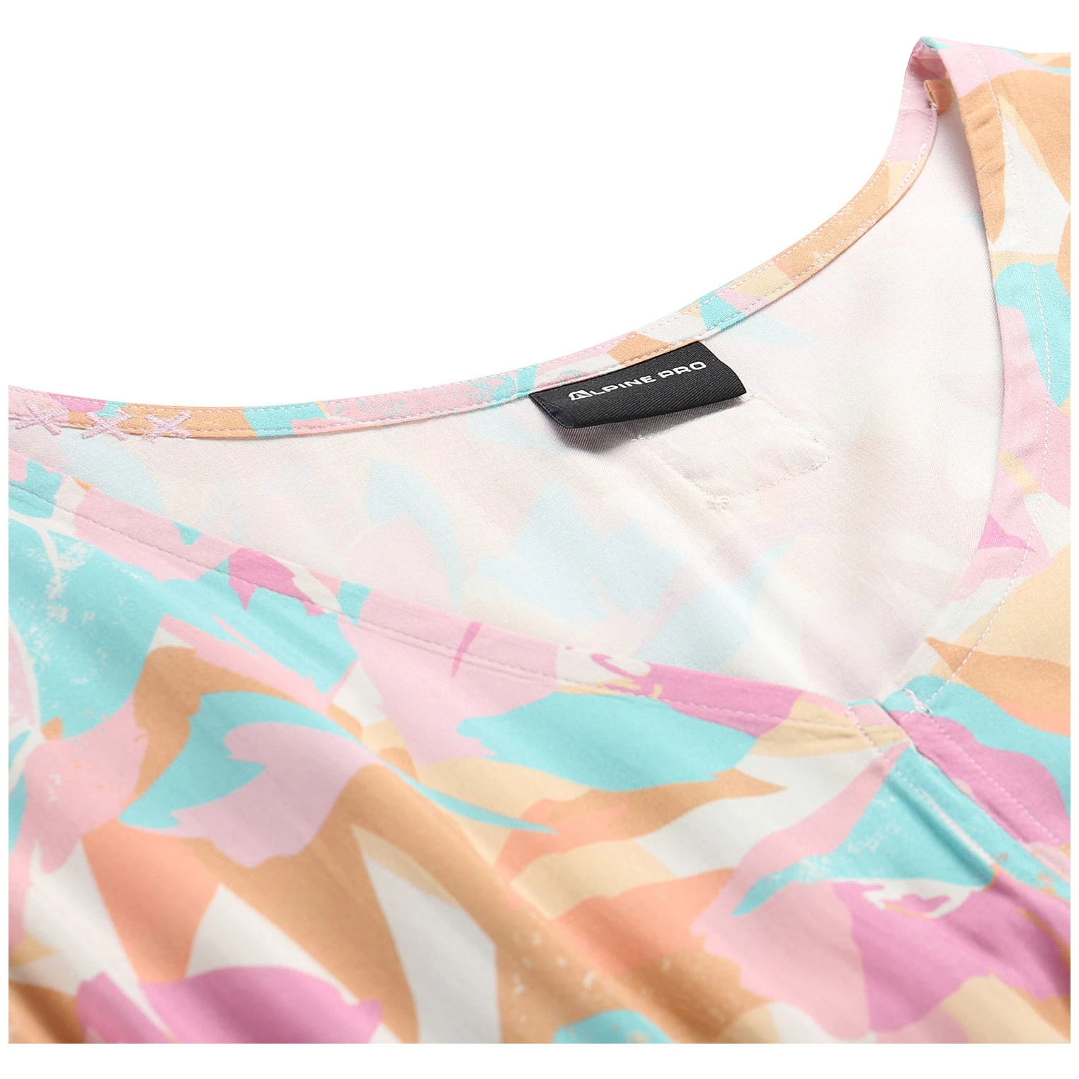 Damskie letnie sukienki Alpine Pro Niewa z przewiewnej wiskozy. Luźny krój z długą spódnicą i rozcięciami zapewni całodzienny komfort w mieście, w podróży i podczas spacerów.