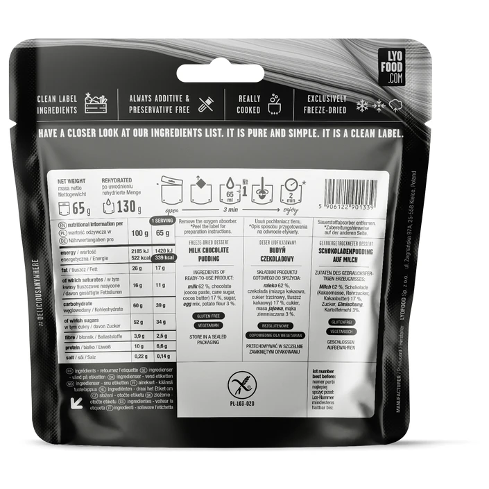 Polska firma Lyo Food od 1998 roku dostarcza do sklepów wysokiej jakości żywność liofilizowaną (= suszoną mrozem). Chodzi o to, aby zapewnić wspinaczom, turystom, żeglarzom, sportowcom ekstremalnym lub podróżnikom wysokiej jakości dietę pełną wszystkich ważnych makroskładników. W 2013 roku Lyo Food zostało nagrodzone złotą nagrodą Industry Awards, która jest jedną z najbardziej prestiżowych nagród, która przyznawana jest wyłącznie produktom najwyższej jakości i jakości z innowacyjnym pomysłem. Posiłki Lyo Foods są w 100% wykonane ze świeżych i naturalnych składników, z których część firma uprawia tylko dla siebie.