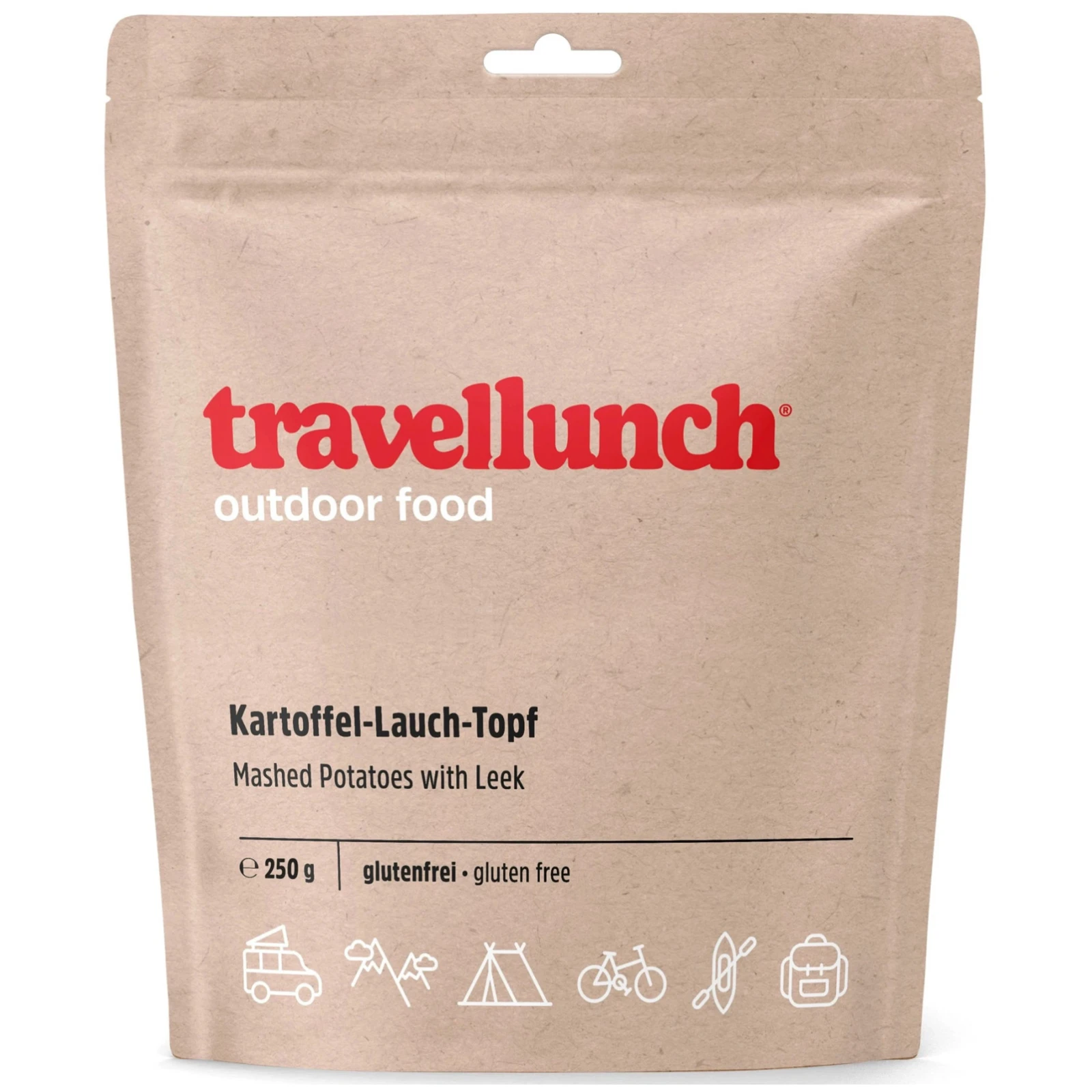 Profesjonalne odwodnione danie Travellunch Puree ziemniaczane z porami bez glutenu zawiera wszystkie ważne substancje dla ludzkiego organizmu nawet podczas ekstremalnych ćwiczeń i świetnie smakuje.