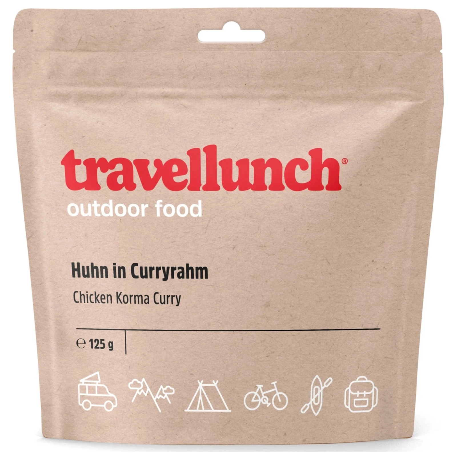 Profesjonalna żywność odwodniona Travellunch Kurczak Korma curry z ryżem zawiera wszystkie ważne substancje dla ludzkiego organizmu nawet podczas ekstremalnych ćwiczeń i świetnie smakuje.