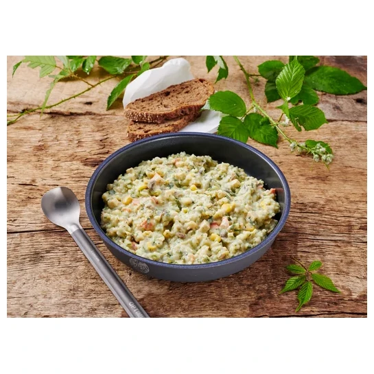 Smetanowe kurczak od producenta Trek’n Eat to idealny wybór dla każdego, kto chce delektować się obfitym i kremowym posiłkiem. Głównym składnikiem jest ryż długoziarnisty, uzupełniony o wysokiej jakości mięso z kurczaka, śmietanowy sos i warzywa. Posiłek przygotujesz we własnym, samostojącym opakowaniu, a następnie od razu go z niego skonsumujesz.