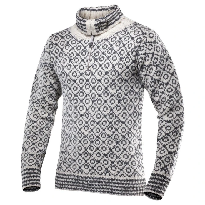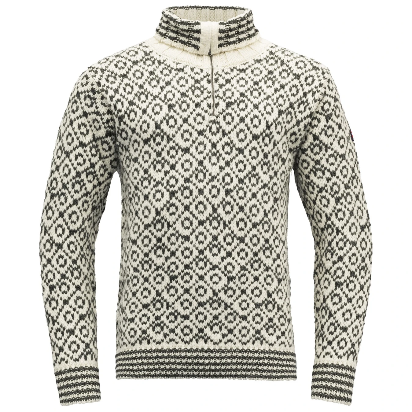 Tradycyjny norweski sweter Devold Svalbard Wool Zamek Neck ze 100% czystej wełny z ikonicznym wzorem, stójką na zamek i maksymalną odpornością na trudne warunki.