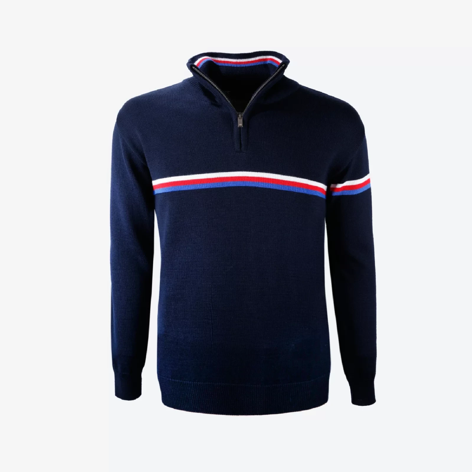 Sweter z wysokiej jakości wełny Merino, uzupełniony subtelną trikolorą, to idealny wybór na co dzień.Dzięki połączeniu naturalnych i funkcjonalnych włókien sweter jest lekki, oddychający i przyjemny w dotyku.
