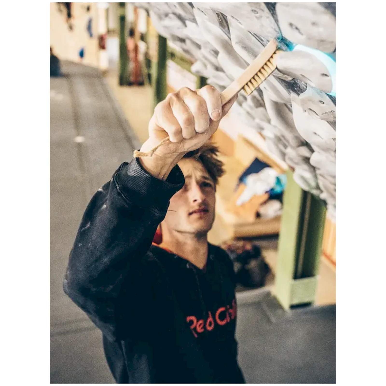 Szczotka Dirty Hairy zapewnia kompaktowe i funkcjonalne rozwiązanie do szybkiego czyszczenia chwytów podczas wspinaczki. Dzięki naturalnemu, drewnianemu korpusowi jest przyjemna w użytkowaniu, a jej rozmiary są idealne do manipulacji nawet w ograniczonej przestrzeni. Rozmiar S jest idealny do mniejszych powierzchni, a jednocześnie łatwo mieści się w zwykłych pętlach na woreczkach z magnezją.