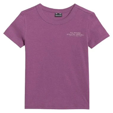 T-shirt dziecięcy Tshirt F2389 4F z elastycznej, prążkowanej dzianiny bawełnianej zapewnia komfort, swobodę ruchów i miękkie, przyjemne uczucie podczas noszenia przez cały dzień.