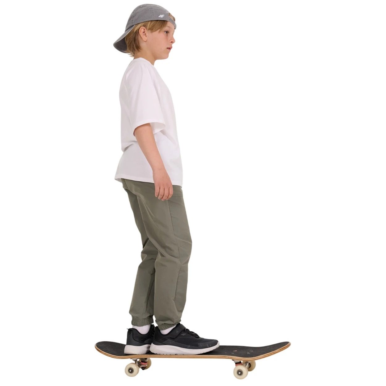 Dziecięca koszulka 4F Tshirt M2411 to uniwersalny element garderoby do noszenia na co dzień i uprawiania sportu. Wykonana w 100% z bawełny o gramaturze 180 gsm, co zapewnia miękkość, trwałość i komfort noszenia bez prześwitywania. Luźny krój oversize zapewnia dużą swobodę ruchów, a standardowa długość do bioder sprawia, że koszulka stanowi praktyczną bazę garderoby.
